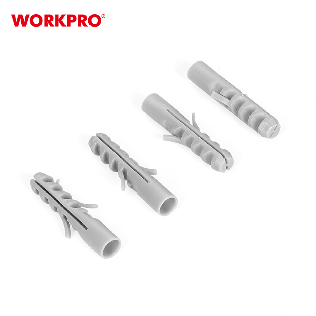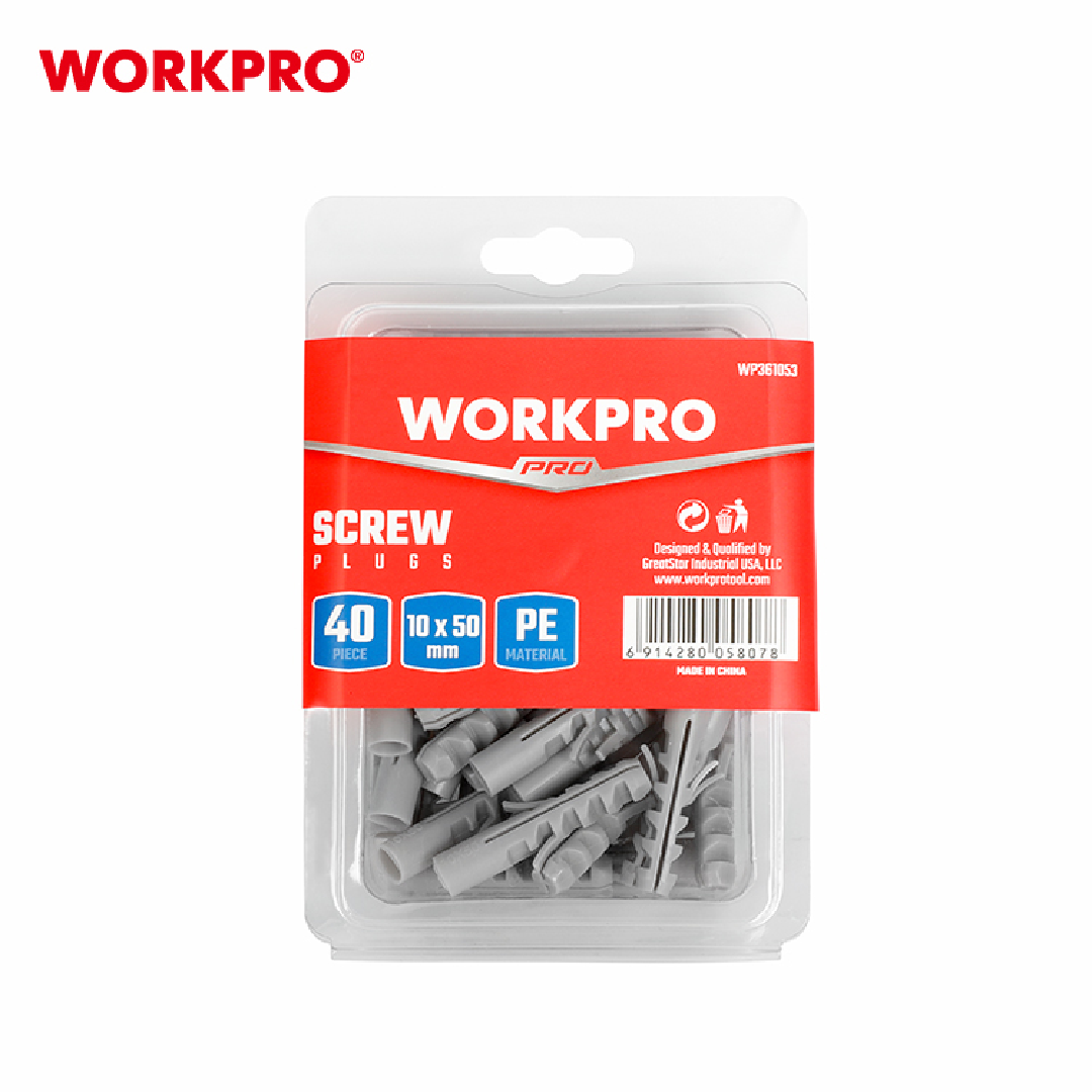 مسامير سدادات عالية الجودة من WORKPRO — موديل WP361052، تأتي في عبوة تحتوي على 80 مسمار من نوع Screw Plug، بمقاس 8×40 مم. توفر هذه السدادات والمسامير تثبيتًا آمنًا وموثوقًا في الجدران الخرسانية والصلبة، وتعد خيارًا مثاليًا للاستخدامات المنزلية والصناعية.