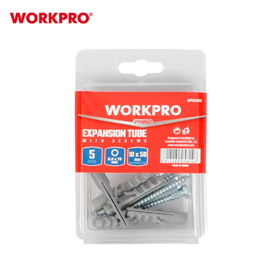 طقم براغي تثبيت مع أسافين تمدد ضخمة من ورك برو (WORKPRO) – مقاس 10×50 ملم – عدد 5 قطع – موديل WP361060 – هو الحل المثالي للمهام التي تتطلب قوة تثبيت استثنائية وأماناً فائقاً. صُمم هذا الطقم المكون من براغي فولاذية وأسافين تمدد (فيشر) كبيرة للتعامل مع الأحمال الثقيلة في الجدران الخرسانية والأسطح الصلبة، مما يضمن ثباتاً لا يتزحزح للمعدات والأجهزة الضخمة.