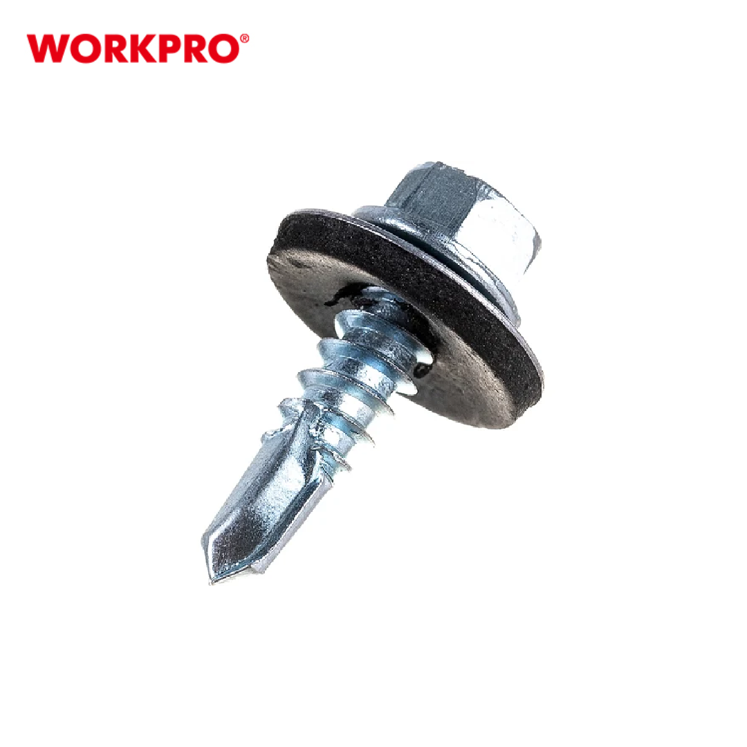 مسامير ذاتية الحفر عالية الجودة من WORKPRO — موديل WP361012، تأتي في عبوة تحتوي على 500مسمار من نوع Self-Drilling Screw، برأس سداسي Hex Washer ومطلية بالزنك لمقاومة الصدأ. مقاس المسمار M6.3×25 مم يجعله مناسبًا للتثبيت السريع في المعادن والخشب دون الحاجة لحفر مسبق.