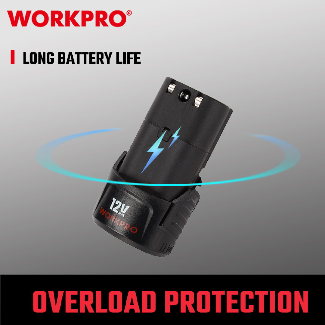 - متوافقة مع جميع أدوات WORKPRO ذات نظام 12V.