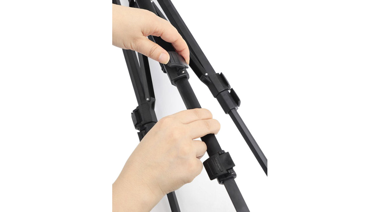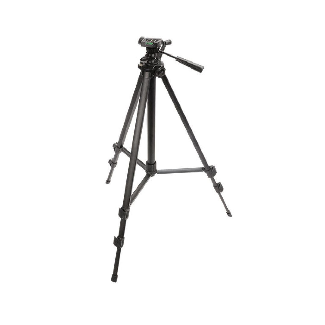 يتميّز الحامل بارتفاع مغلق 0.5 متر وارتفاع أقصى يصل إلى 1.5 متر، مع وزن خفيف لا يتجاوز 0.9 كغ لسهولة النقل والحمل. مصنوع من ألمنيوم مؤكسد عالي الجودة يضمن المتانة وطول العمر. كما يحتوي على قاعدة قوية قابلة للتعديل والدوران، مع فقاعات ميزان مدمجة لتسهيل عملية التسوية السريعة والدقيقة.