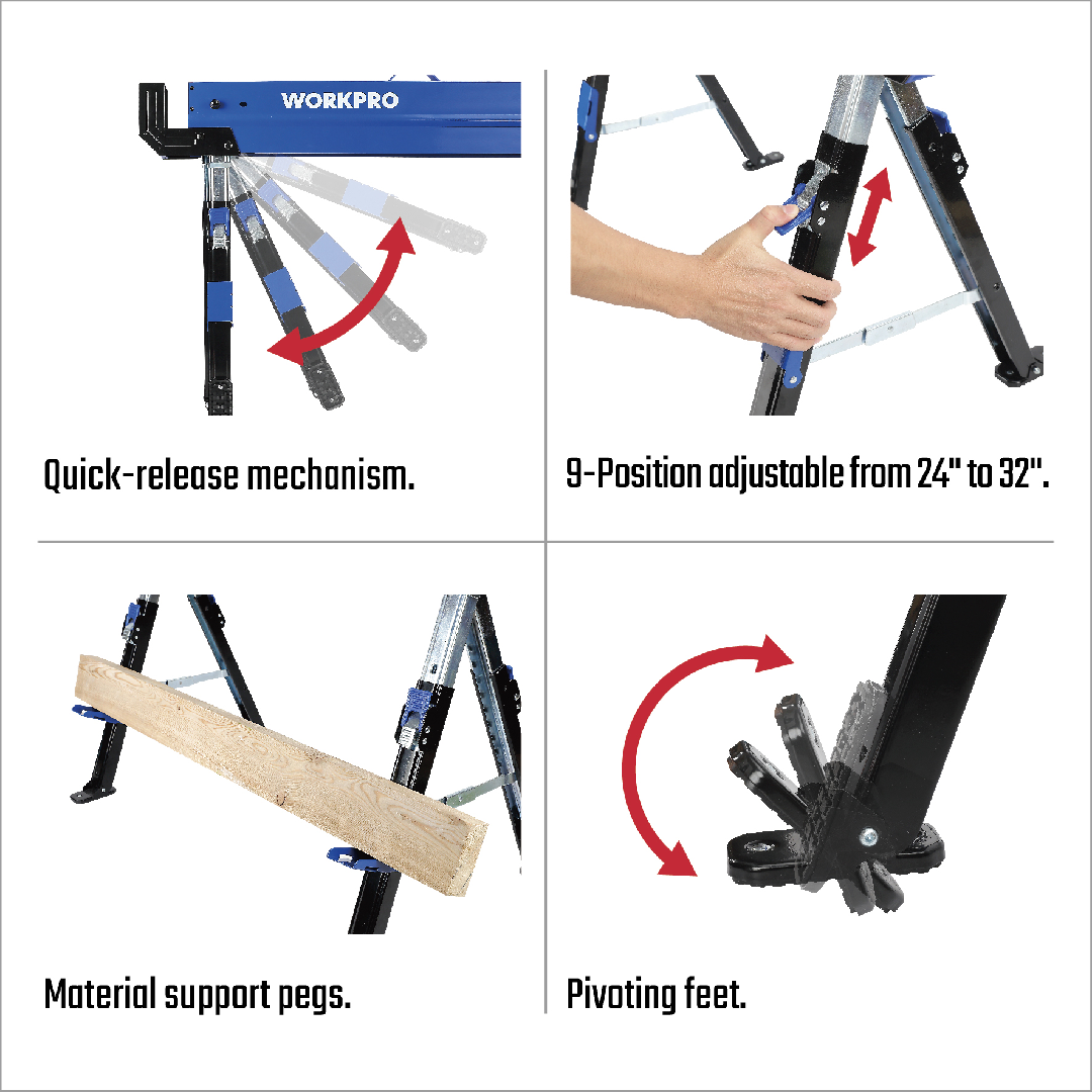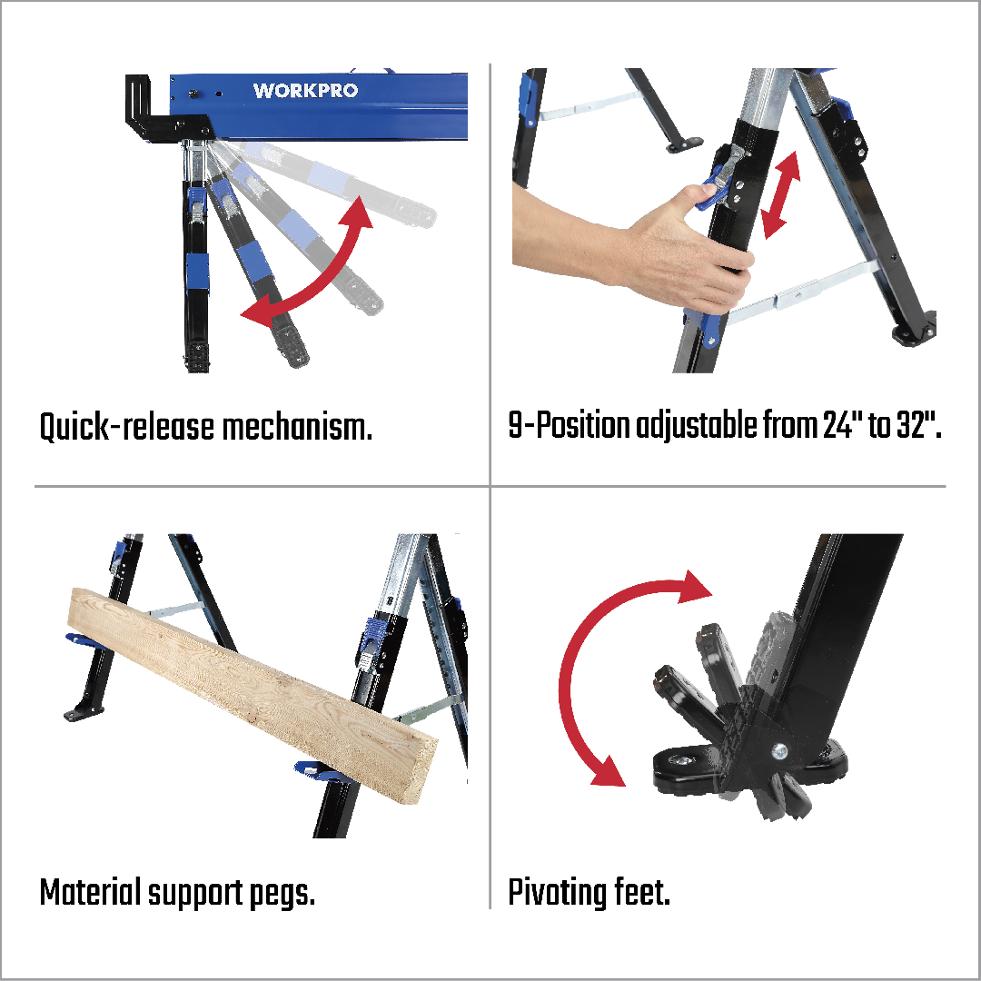 الموديل: WORKPRO Heavy-Duty Folding Adjustable Saw Horse