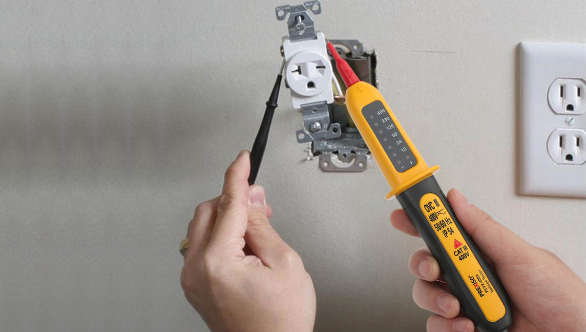 جهاز فحص جهد كهربائي عملي بتصميم مدمج وخفيف الوزن، سهل الحمل والاستخدام اليومي. يتيح قياس الجهد المتردد والمستمر حتى 400 فولت، مع إمكانية الاستخدام على دوائر GFCI، ما يجعله مناسبًا لأعمال الصيانة الكهربائية المختلفة.