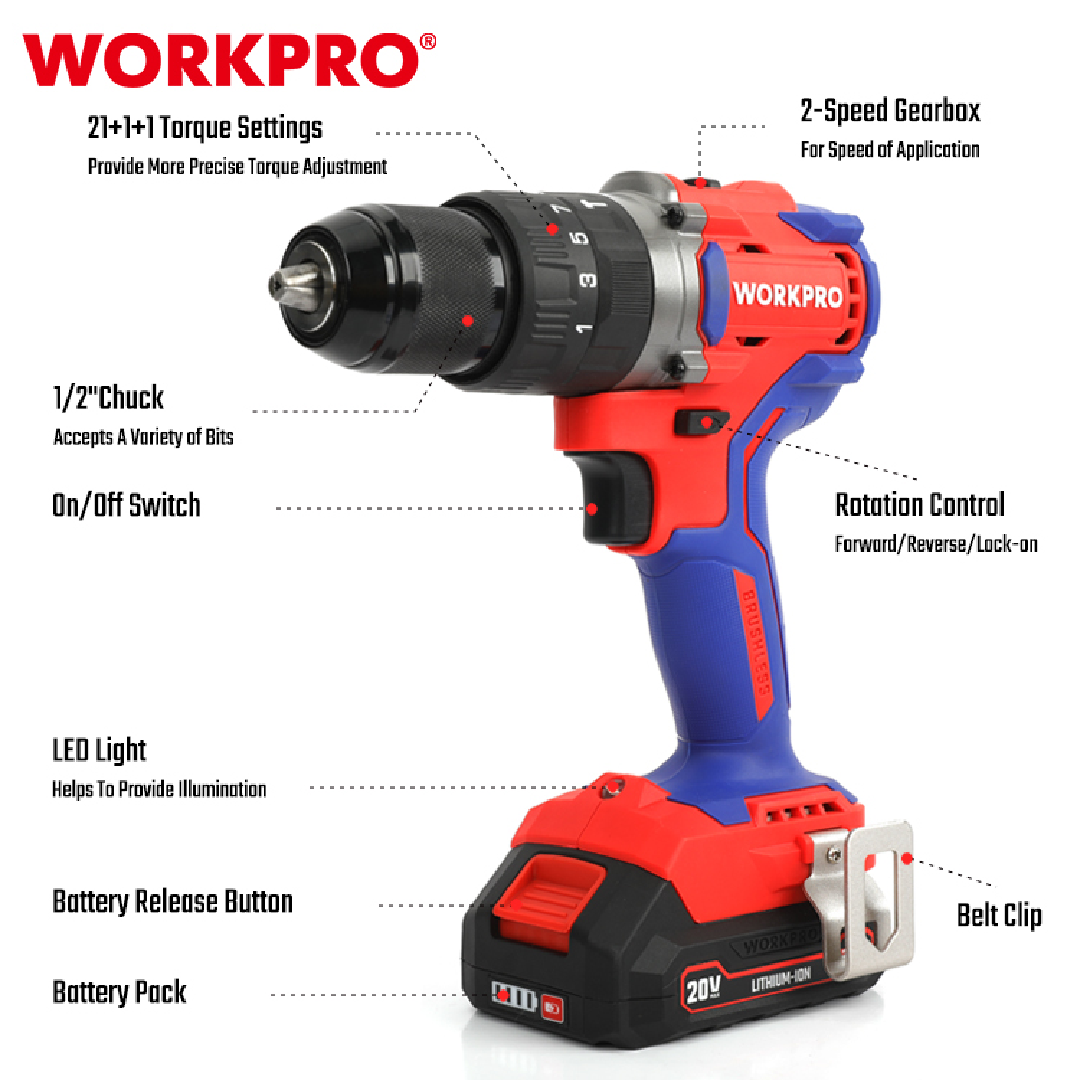 - دريل صدمات WORKPRO WP390007 – 20V Brushless