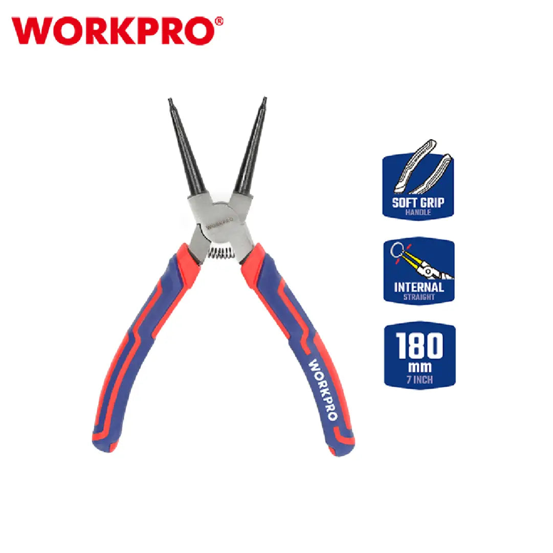 زردية حلقات تثبيت داخلية مستقيمة (زردية تيل) من ورك برو (WORKPRO) – مقاس 180 ملم (7 إنش) – موديل WP231152 – هي الأداة المتخصصة التي يحتاجها كل ميكانيكي وفني للتعامل مع حلقات التثبيت (Circlips) الداخلية بدقة وسهولة. صُممت بفكوك مستقيمة ونحيفة لتوفير أقصى درجات التحكم عند تركيب أو إزالة الحلقات من داخل الثقوب والمحاور.