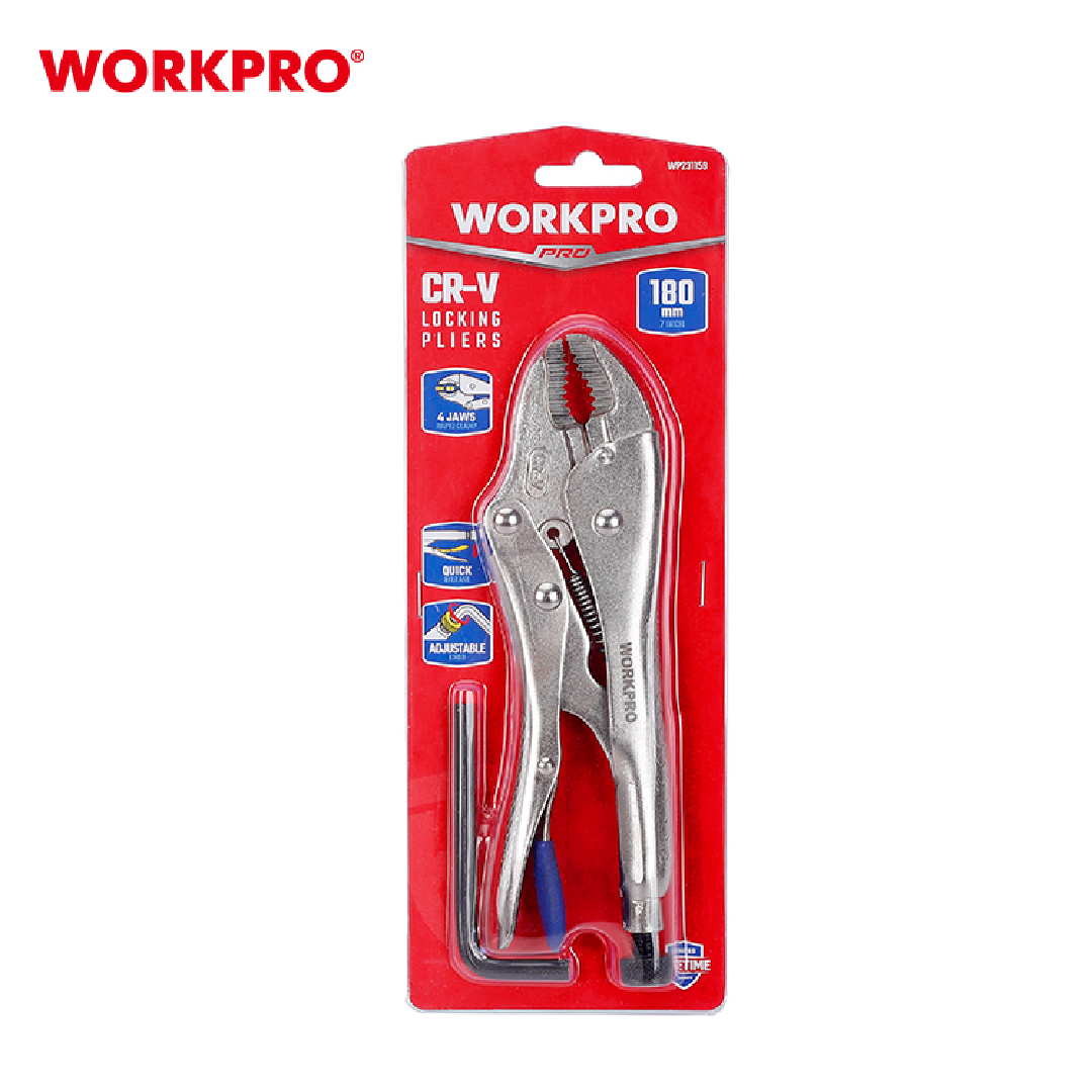 زرادية كبس بروفيشنال 7 انش اعوج من وورك برو من WORKPRO موديل WP231158 للإمساك بالأشياء ذات الأشكال المختلفة وتثبيتها وقفلها بأمان. مصنوعة من فولاذ الكروم الفاناديوم عالي الجودة (CR-V)، توفر هذه الكماشة المتانة والقوة لتطبيقات مختلفة. يوفر تصميم الفك المستقيم قبضة قوية على الأشياء المسطحة أو المربعة أو السداسية، مما يجعلها متعددة الاستخدامات لمهام متعددة. يضمن المقبض المريح الاستخدام المريح أثناء المهام المطولة.