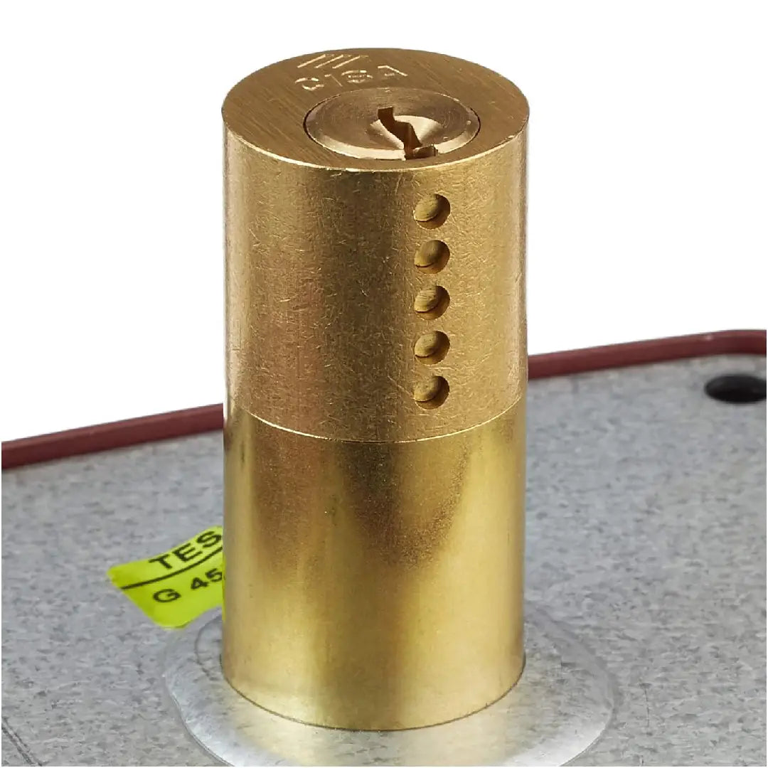 • سلندر نحاسي عالي الجودة: مزود بسلندر خارجي من النحاس المطلي (Brass Plated)، مما يوفر مقاومة عالية للصدأ وسلاسة فائقة في حركة المفتاح.