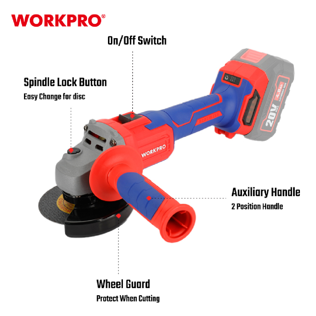 - مطحنة زاوية WORKPRO WP392004 – 20V Brushless