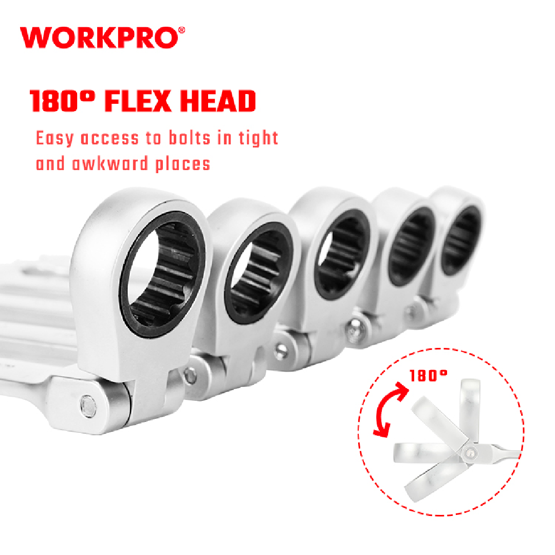 رأس مرنّ وآلية راشِت: تحتوي المجموعة على مفاتيح برأس مرن وعلّاقة راشِت بـ 72 سنّاً ما يتيح زاوية حركة صغيرة تصل إلى 5° تقريباً، لتسهيل العمل في الأماكن الضيقة.