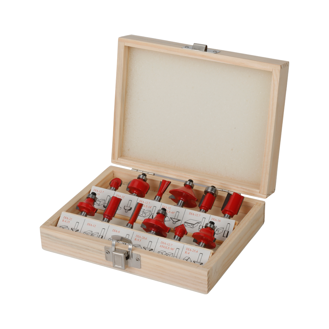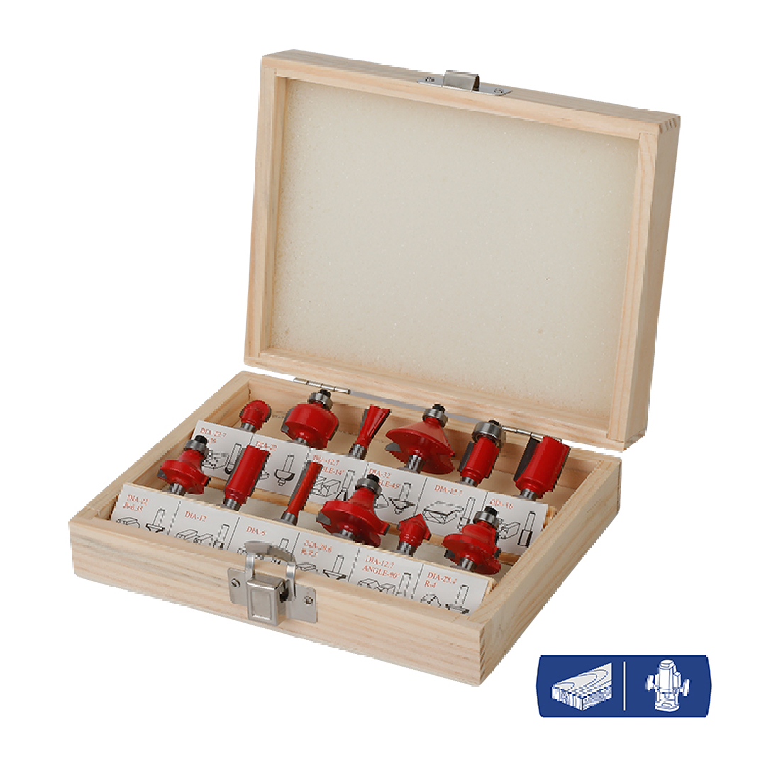 - طقم متكامل يحتوي على 12 ريشة لتطبيقات نجارة متعددة.