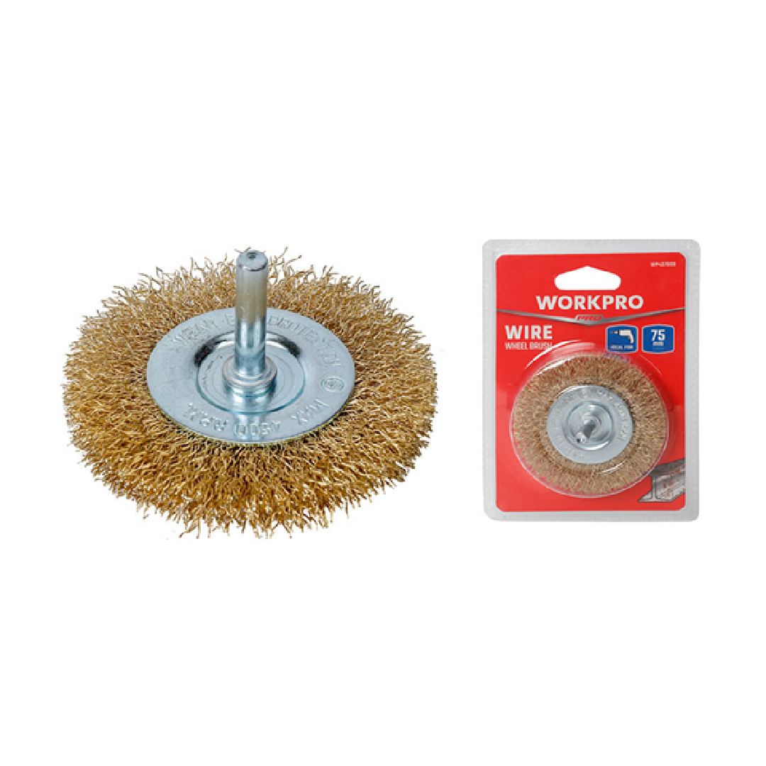• فرشاة سلكية دائرية WORKPRO بقطر 75 مم مع عمود تثبيت 6.3 مم