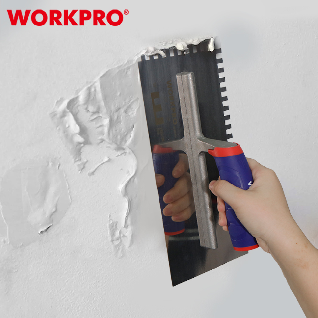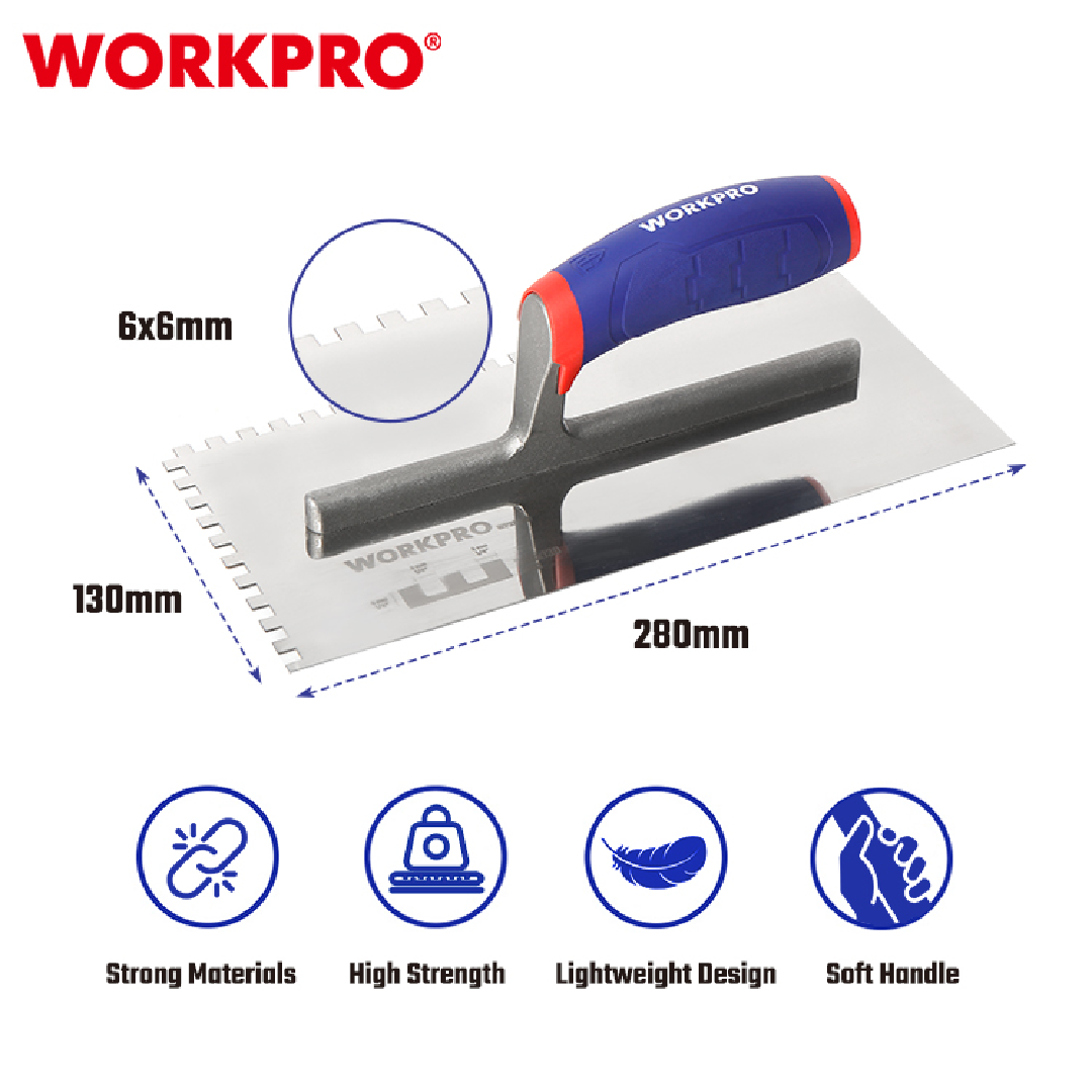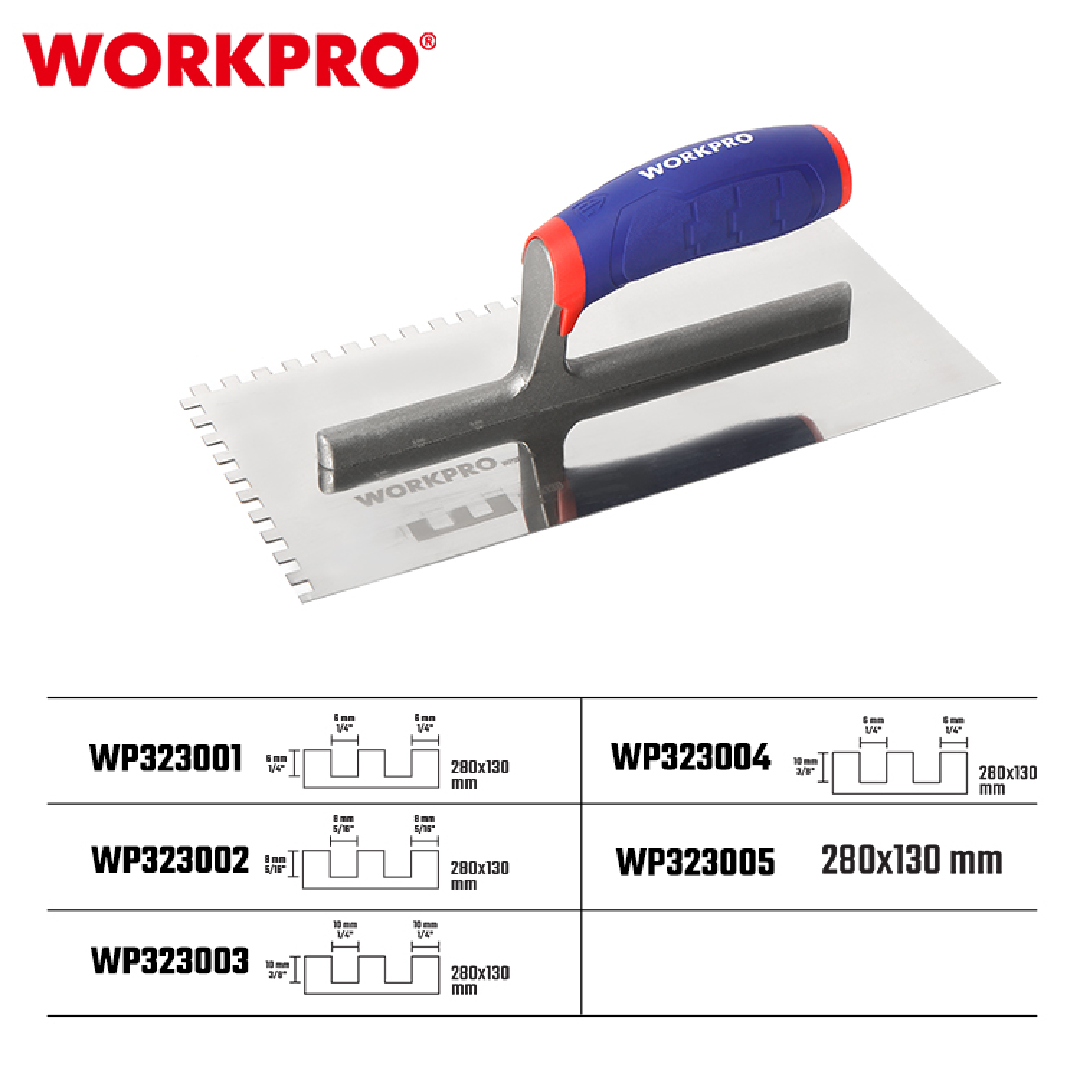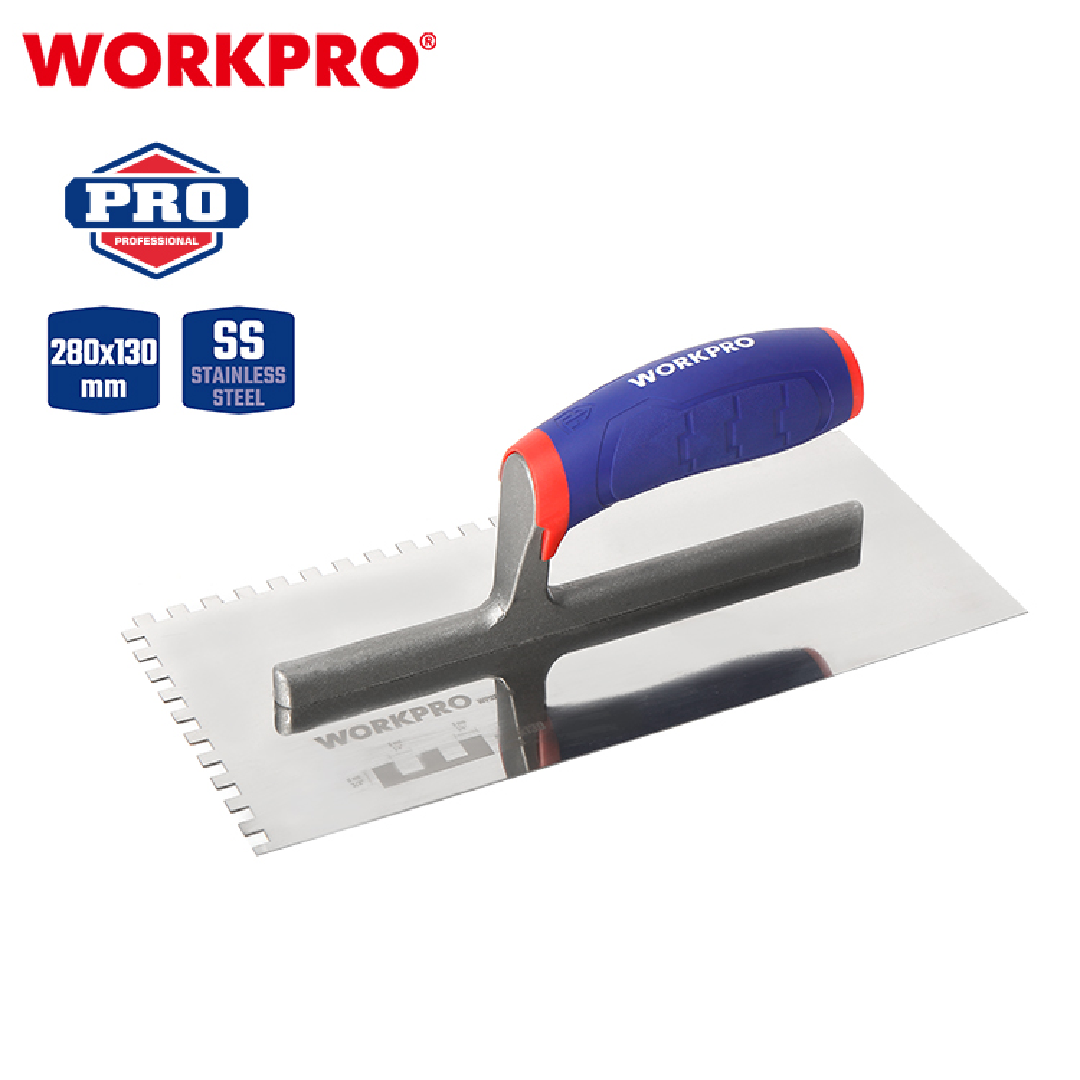 مالج لياسة (مسطرين) عالي الجودة من WORKPRO — موديل WP323003، مصنوع من الفولاذ المقاوم للصدأ بمقاس 280 × 130 مم، ومصمم لتوزيع اللياسة والتشطيبات باحترافية ودقة عالية، مع مقبض مريح للاستخدام الطويل.