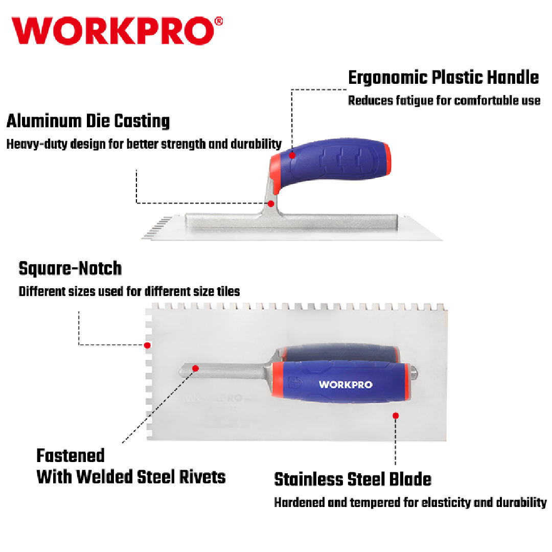 - مقاس مثالي لتوزيع اللياسة والمواد الإسمنتية بسهولة.