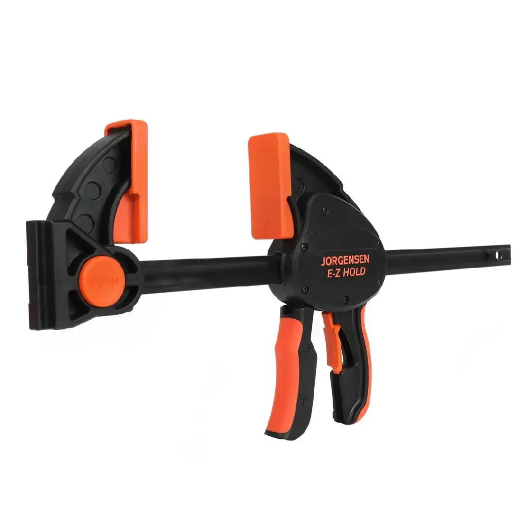 مرابط E-Z HOLD شديدة التحمل (Heavy-Duty E-Z Hold Bar Clamp) – مقاس 6 بوصات – تقدم Jorgensen هذه الفئة للمحترفين الذين لا يقبلون بأنصاف الحلول. تجمع هذه المرابط بين كافة الميزات المبتكرة لفئة E-Z HOLD وبين قوة ضغط مضاعفة، مما يجعلها "حصان العمل" الحقيقي في أي ورشة نجارة احترافية تتعامل مع أوزان ومشاريع ضخمة.