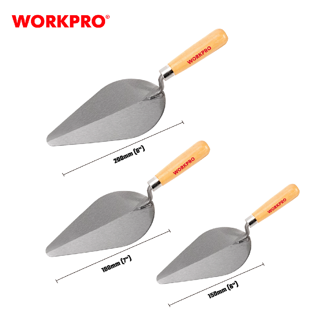 مسطرين بناء عالي الجودة من WORKPRO — موديل WP322004، بطول 150 مم، مزود بمقبض خشبي متين يوفر تحكمًا دقيقًا وثباتًا ممتازًا، ومصمم خصيصًا لأعمال بناء الطوب وتوزيع المونة بسهولة، خاصة في المساحات الصغيرة والتفاصيل الدقيقة.