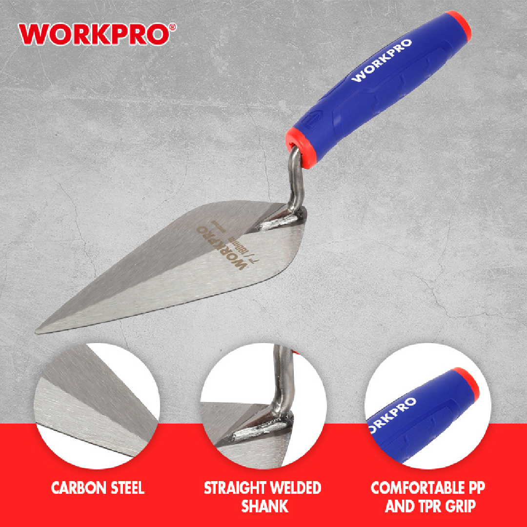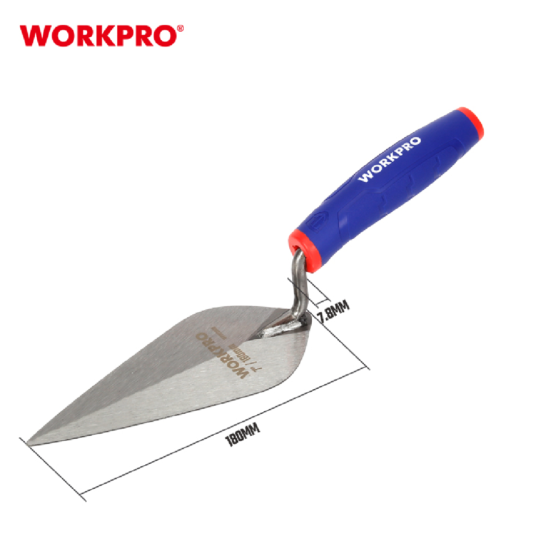 مسطرين بناء عالي الجودة من WORKPRO — موديل WP322008، بطول 180 مم، مزود بمقبض ناعم (Soft Handle) يوفر راحة وتحكمًا ممتازين، ومصمم لأعمال بناء الطوب وتوزيع المونة بدقة وسهولة.