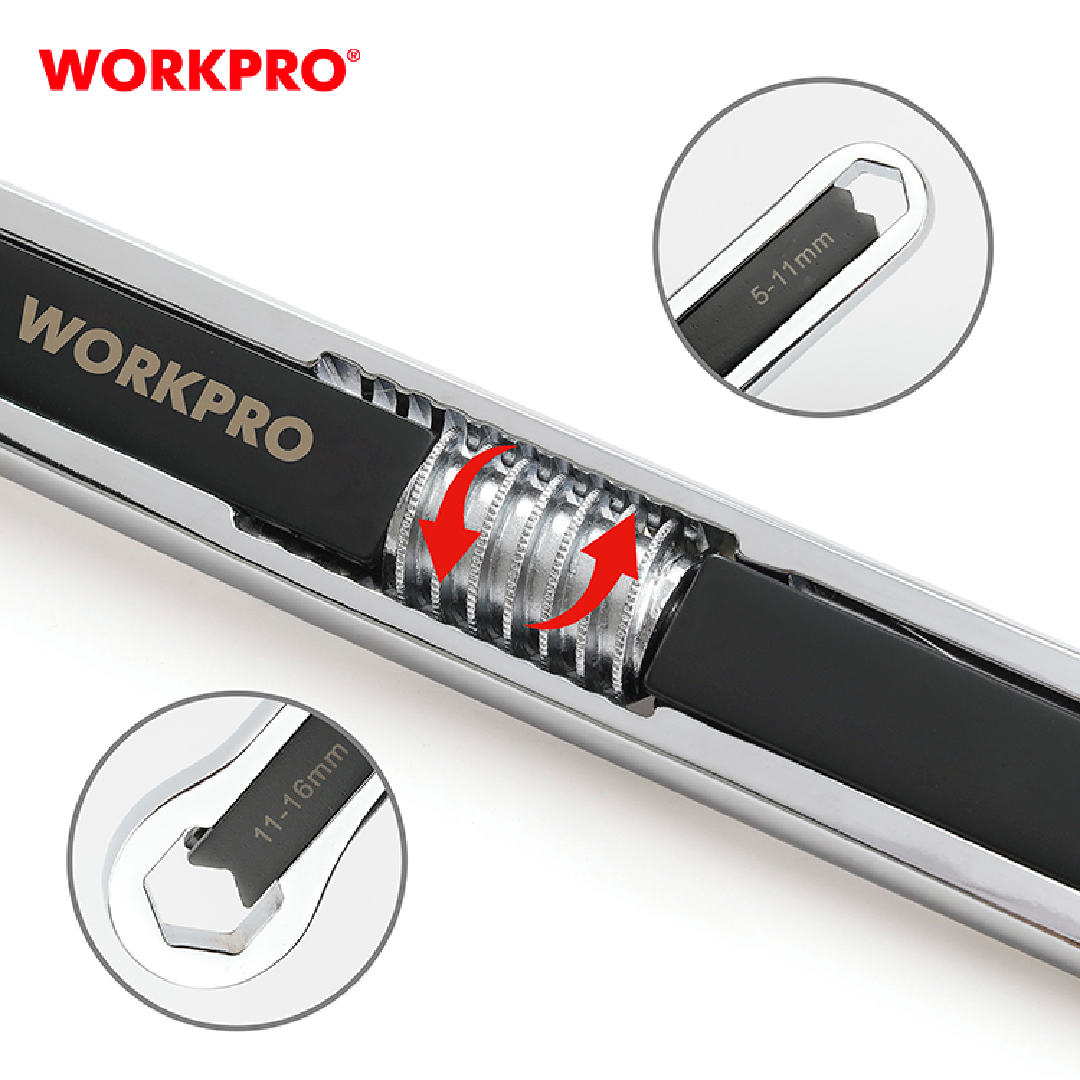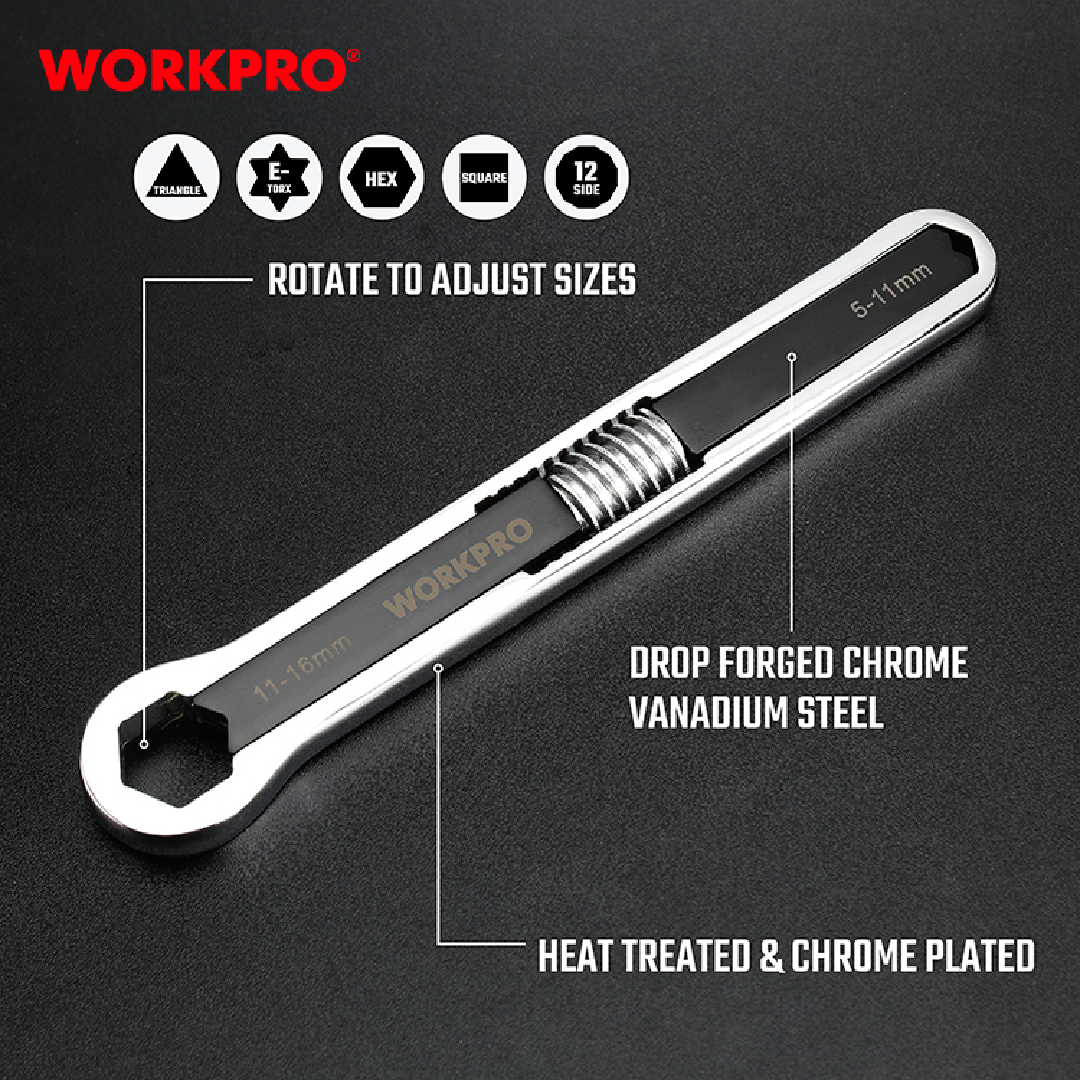مفتاح براغي متعدد من 5-16 ملم من وورك برو WORKPRO WP272017 هو مفتاح متعدد الاستخدامات مصمم لاستيعاب أدوات التثبيت بالمقاييس المترية وSAE. مصنوع من فولاذ الكروم الفاناديوم المطروق، ويوفر قوة ومتانة استثنائيتين. يضمن الطلاء المعالج بالحرارة والمطلي بالكروم مقاومة التآكل والتلف. يتميز هذا المفتاح بفكين قابلين للتعديل قادرين على التعامل مع أدوات التثبيت التي تتراوح من 5 مم إلى 16مم، مما يجعله مناسبًا لمجموعة واسعة من التطبيقات.