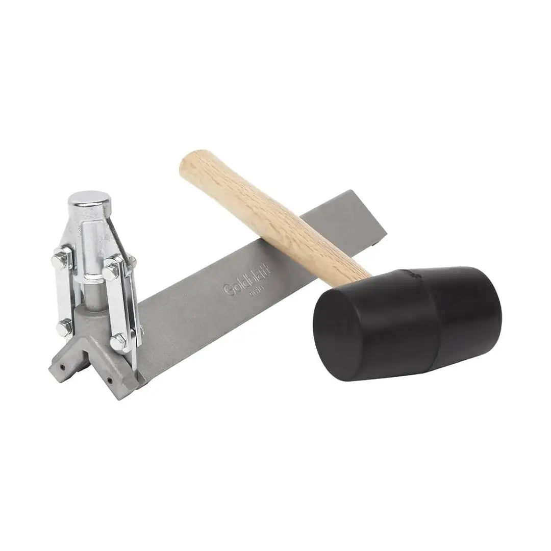 طقم كباسة الزوايا الاحترافية مع المطرقة (Clincher with Mallet) – موديل G15813 – هو الحل الأمثل من جولد بلات (Goldblatt) للحصول على زوايا خارجية حادة ومثالية في أعمال الجبسوم بورد. تتيح لك هذه الأداة تثبيت الزوايا المعدنية (Outside Corner Beads) بسرعة فائقة ودون الحاجة لمسامير أو براغي في الخطوات الأولى، مما يضمن تمركزاً دقيقاً للزاوية في كل مرة.