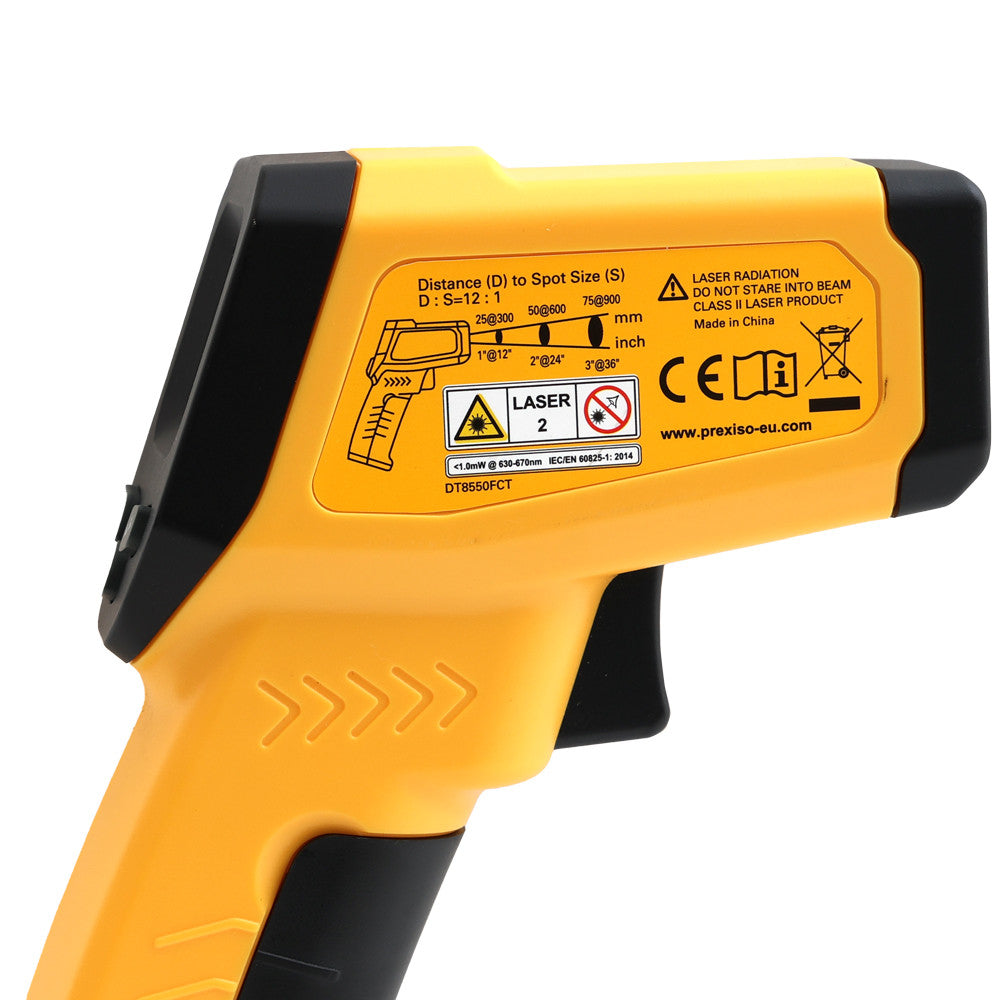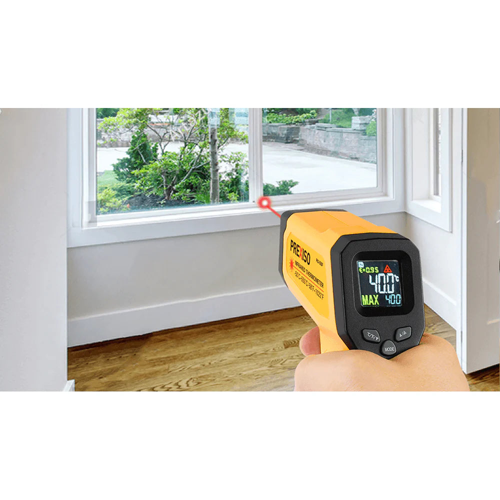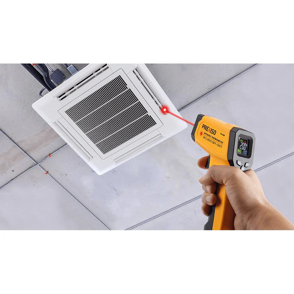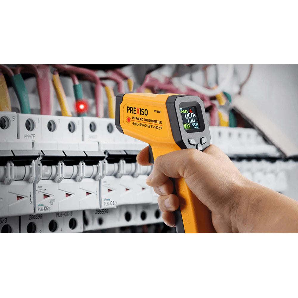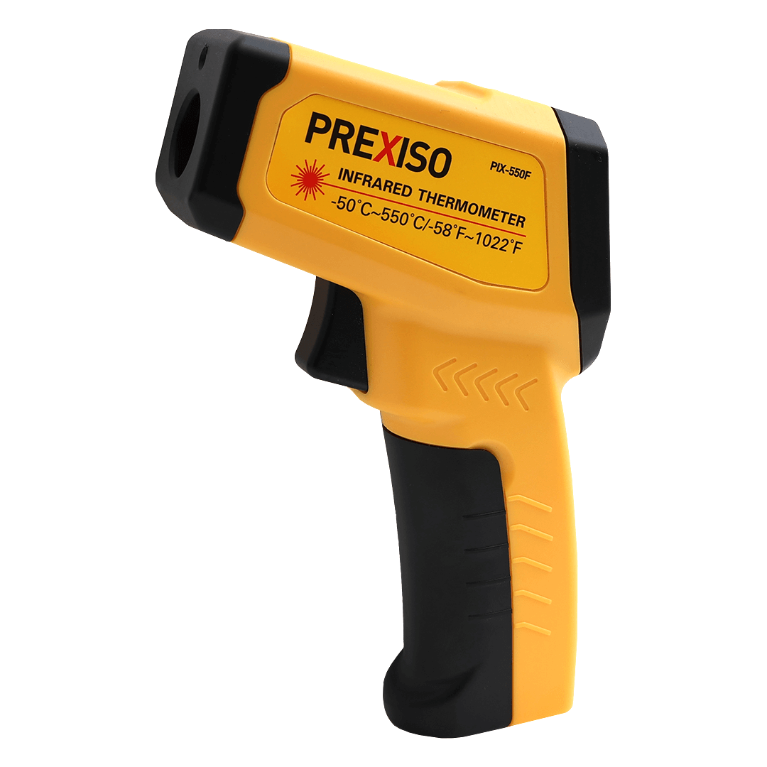 ميزان حرارة بالأشعة تحت الحمراء من Prexiso مصمم لقياس درجات حرارة الأسطح الساخنة أو الخطرة أو صعبة الوصول بدون تلامس، وبأمان كامل. يتميز بتصميم مدمج ومتين وسهل الاستخدام؛ كل ما عليك هو توجيه الجهاز والضغط على الزر ليعرض درجة الحرارة الحالية خلال أقل من ثانية.