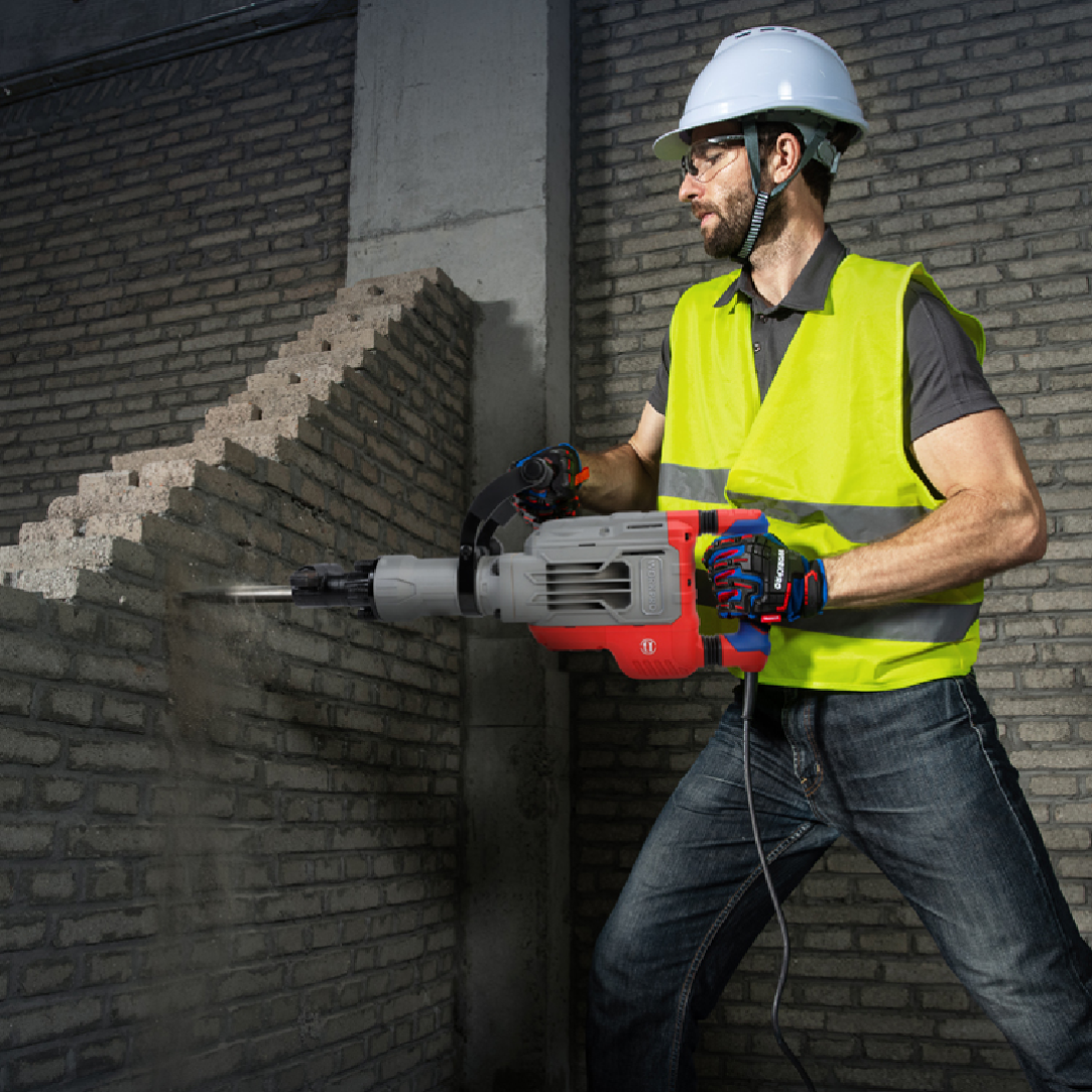 مصمّمة لمهام الهدم المتوسطة والثقيلة من كسر خرسانة، طوب، بلاطات، فتحات، وتجهيز مواقع البناء أو الترميم.