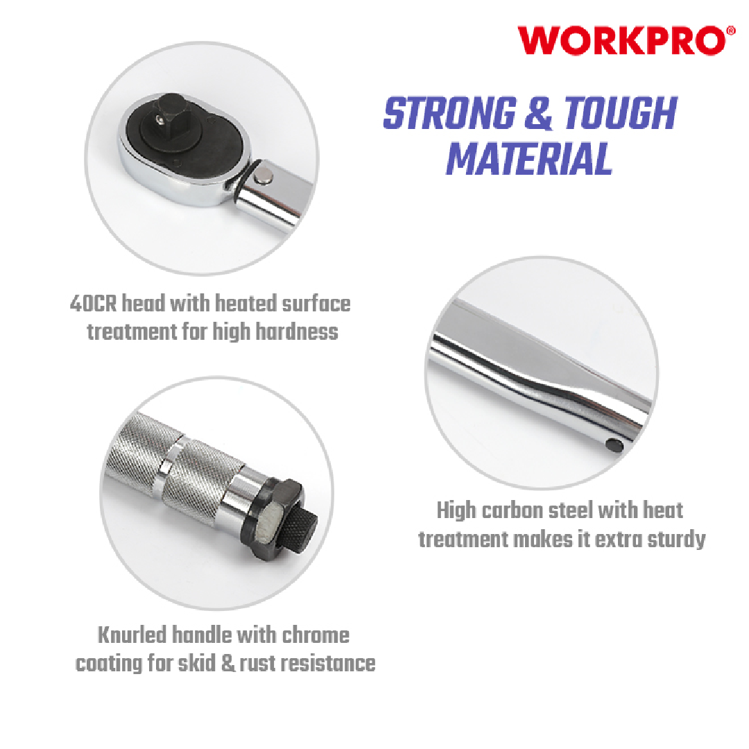 مفتاح عزم 1/2 بوصة – WP271017 workpro الأقوى في السلسلة، مناسب للأعمال الثقيلة وصيانة المركبات الكبيرة. مزوّد بآلية سقاطة 24... اقرا المزيد