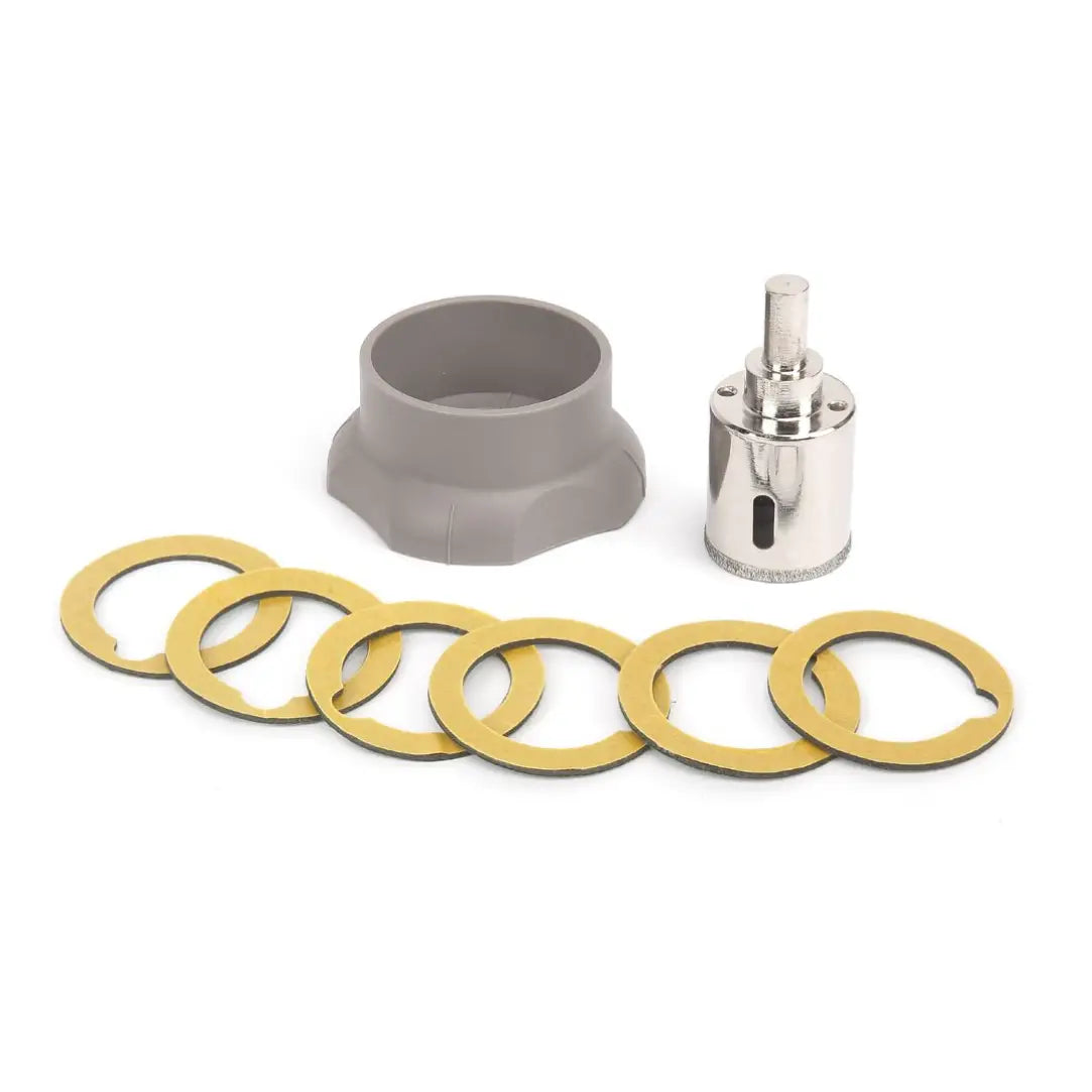 تم تصميم نظام Pacesetter 1-3/8in. Hole Saw لحفر بلاط السيراميك والبورسلين والرخام والجرانيت. يتميز بحافة قطع من كربيد التنجستن لقطع أسرع وأكثر سلاسة. يتضمن النظام دليل حفر وكوب تبريد بالماء لتسهيل الحفر الرطب فقط، مما يضمن الدقة والكفاءة.
