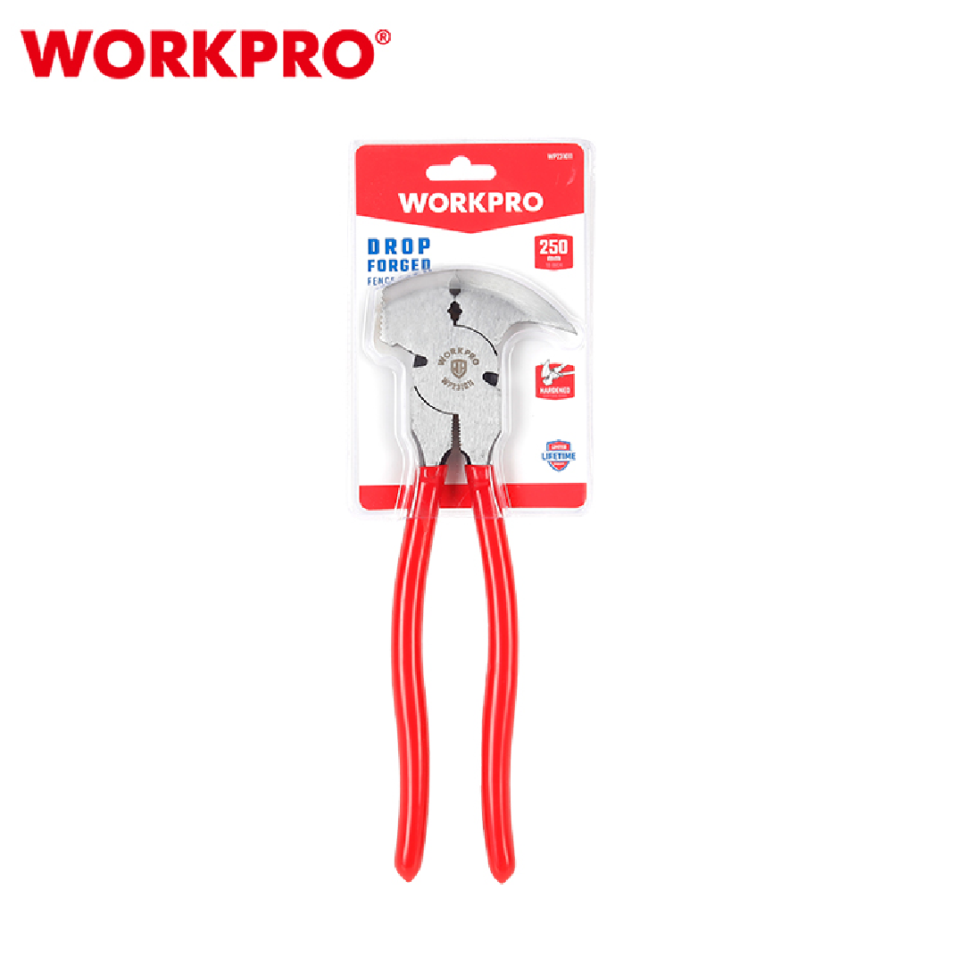 كماشة السياج WORKPRO مقاس 10 بوصات (250 مم) WP231011 هي أداة متعددة الاستخدامات مصممة لمهام مثل القطع والدق والإمساك، مما يجعلها مثالية لتركيب السياج وصيانته. مصنوعة من الفولاذ المطروق، هذه الكماشة معالجة حرارياً ومصقولة بالكامل لتعزيز المتانة ومقاومة التآكل. يضمن المقبض المريح قبضة مريحة أثناء الاستخدام لفترات طويلة.