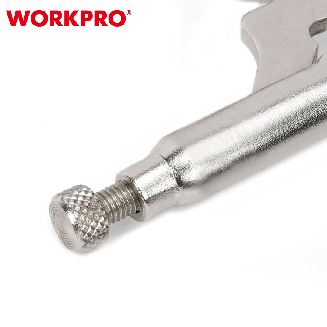 زرادية كبس لحام 10 انش من ووركبرو (250 مم) من WORKPRO WP231061 لتكون ذات قوة ومتانة قصوى، مما يجعلها مثالية لأعمال اللحام وغيرها من مهام تشغيل المعادن. مصنوعة من الفولاذ الكربوني عالي الجودة، توفر هذه الكماشة قفلًا وفكًا سريعًا وسهلاً، مع ذراع فك محمية لضمان التشغيل الآمن والفعال. يسمح المسمار القابل للتعديل بضبط الضغط بدقة لتناسب قطع العمل المختلفة.