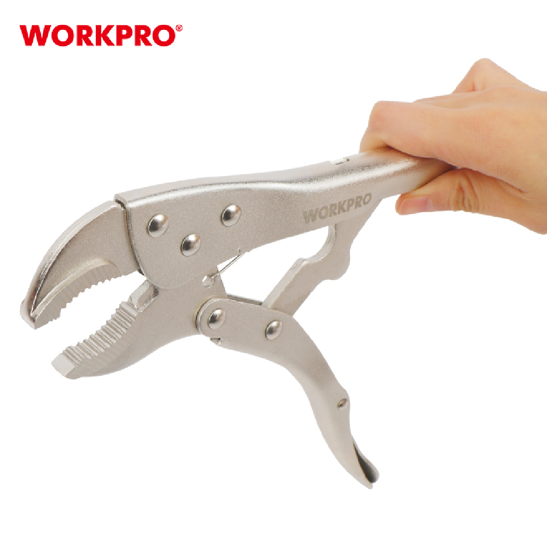 زرادية كبس 10 انش اعوج من وورك برو تم تصميم كماشة القفل المنحنية WORKPRO WP231071 لمهام الإمساك المتنوعة. مصنوعة من الفولاذ الكربوني عالي الجودة، تتميز هذه الكماشة بآلية قفل وفك سريعة وسهلة، مع ذراع تحرير محمية لتعزيز السلامة أثناء الاستخدام. يسمح المسمار القابل للتعديل بضبط الضغط بدقة لتناسب قطع العمل المختلفة.