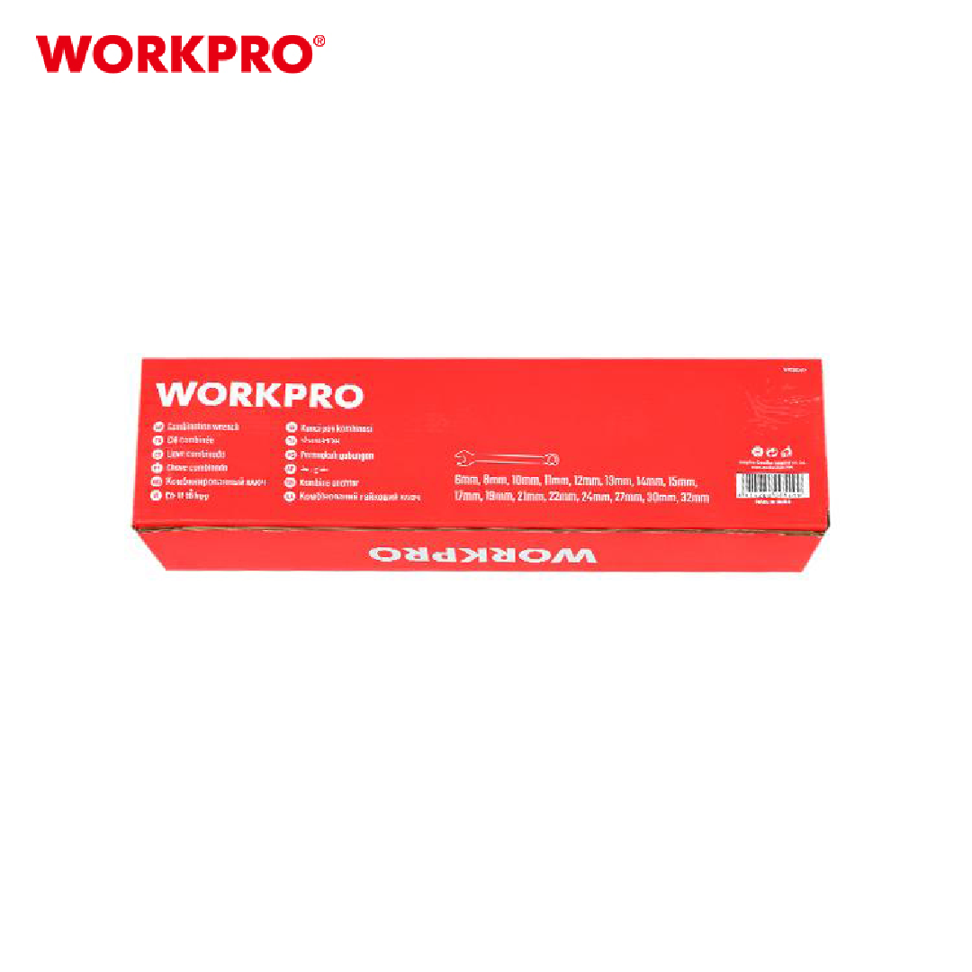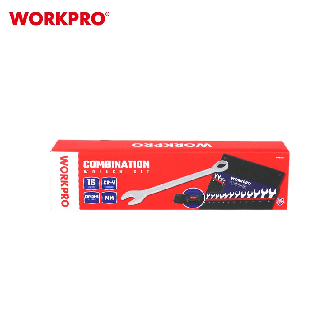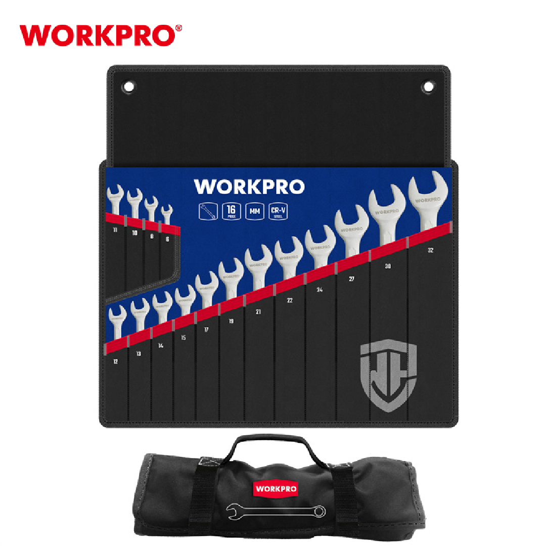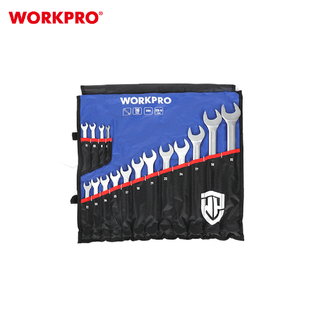 طقم شق رنق 16 قطعة من وورك برو WORKPRO WP202503 المكونة من 16 قطعة هي مجموعة شاملة من مفاتيح الربط عالية الجودة المصممة للمحترفين وهواة الأعمال اليدوية. كل مفتاح ربط مصنوع من فولاذ الكروم والفاناديوم، ومعالج بالحرارة لتعزيز القوة والمتانة، ويتميز بلمسة نهائية مطلية بالكروم ومطلية بالرمل لمقاومة التآكل. تتضمن المجموعة مجموعة من الأحجام المترية، مما يجعلها مناسبة لتطبيقات مختلفة، من إصلاحات المنزل إلى صيانة السيارات. يتم وضع مفاتيح الربط في حقيبة قابلة للطي لسهولة التخزين والحمل.