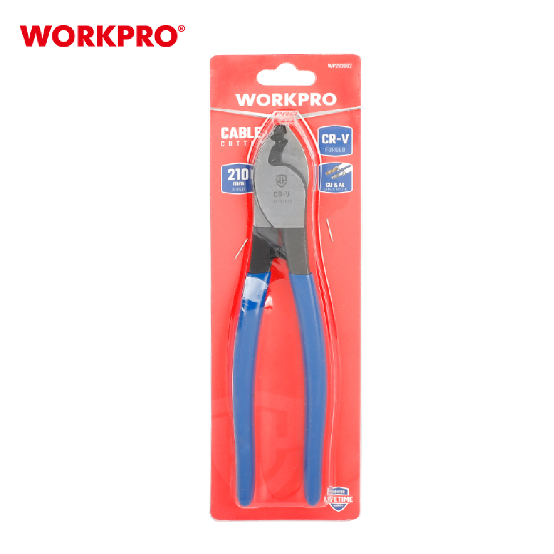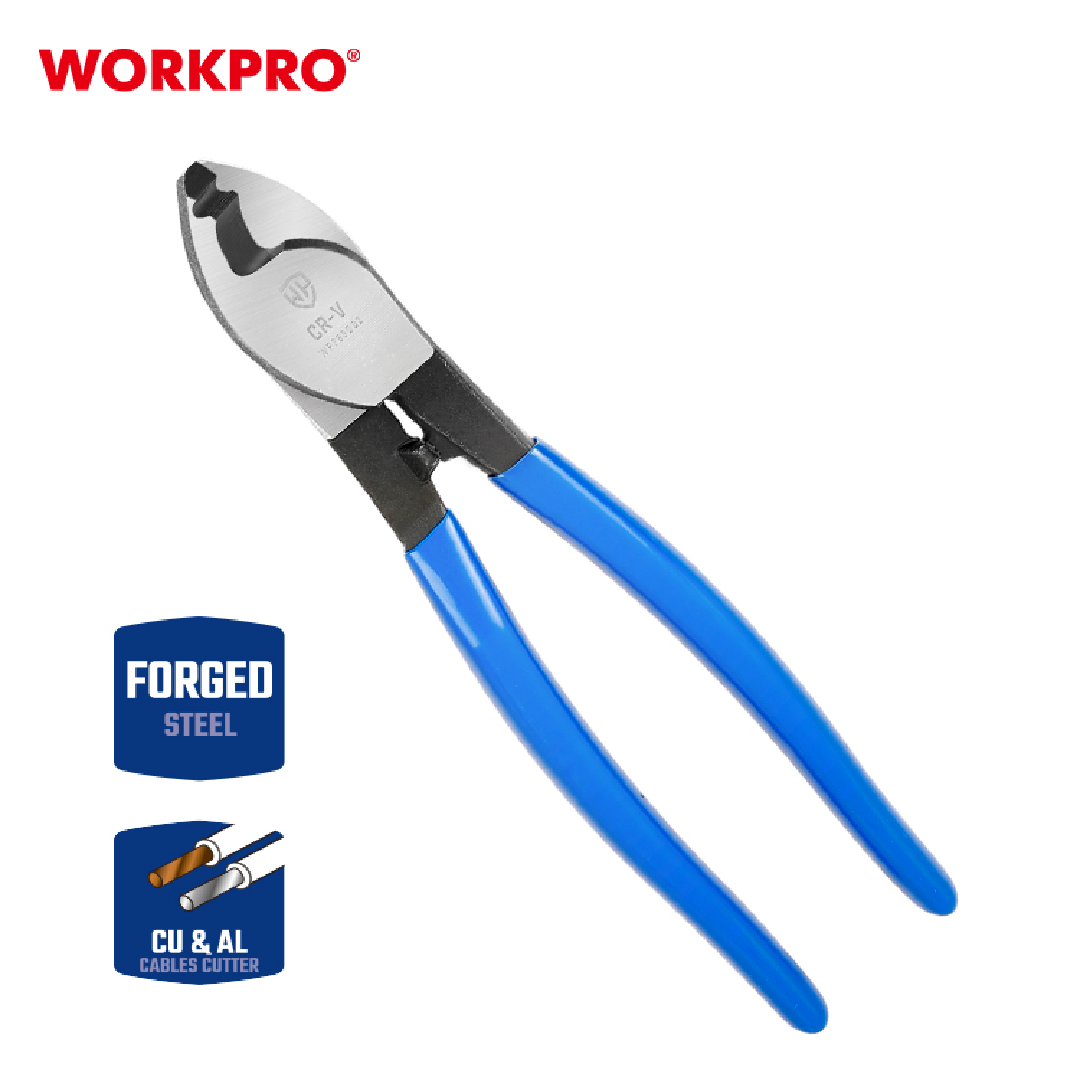 مقص كيبل 6 انش 160 ملم من وورك برو Workpro WP293001 مقاس 160 مم (6 إنش) مصممة لقطع كابلات النحاس والألومنيوم متعددة الخيوط بكفاءة. وهي مصنوعة من فولاذ Cr-V (الكروم والفاناديوم) عالي الجودة، وتتميز برأس مصقول وحواف قطع حادة لقطع سلسة وقوية. المقبض البلاستيكي الأزرق اللامع مقاوم للأوساخ وسهل التنظيف، مما يضمن الاستخدام المريح.