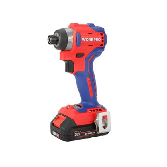درل صدمات لاسلكي عالي الأداء من WORKPRO WP390102، مصمم للاستخدامات الاحترافية والمنزلية. مزود بمحرك بدون فرش، يوفر عزم دوران أقصى يبلغ 220 نيوتن متر، مما يضمن أداءً فعالاً وموثوقًا به لمختلف مهام التثبيت.
