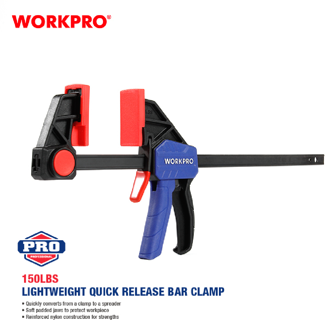 مربط نجاريين اوتامتيك ثقيل 12 انش من وورك برو WORKPRO خفيف الوزن سريع الفك مقاس 300 مم (12 بوصة) لتثبيت فعال وموثوق به في مختلف التطبيقات المنزلية والاحترافية. يتميز بآلية تشغيل بيد واحدة، مما يسمح بالتعديلات السريعة والإطلاق، مما يعزز راحة المستخدم. يمكن تحويل المشبك بسهولة إلى ناشر دون الحاجة إلى أدوات إضافية، مما يزيد من تنوعه. مزود ببطانات ناعمة ذات سطح غير قابل للانزلاق، فهو يثبت قطع العمل بقوة مع حمايتها من التلف. مصنوع من النايلون المقوى، يوفر هذا المشبك المتانة والقوة، مما يجعله مثاليًا لمشاريع النجارة والتصنيع والتجميع.