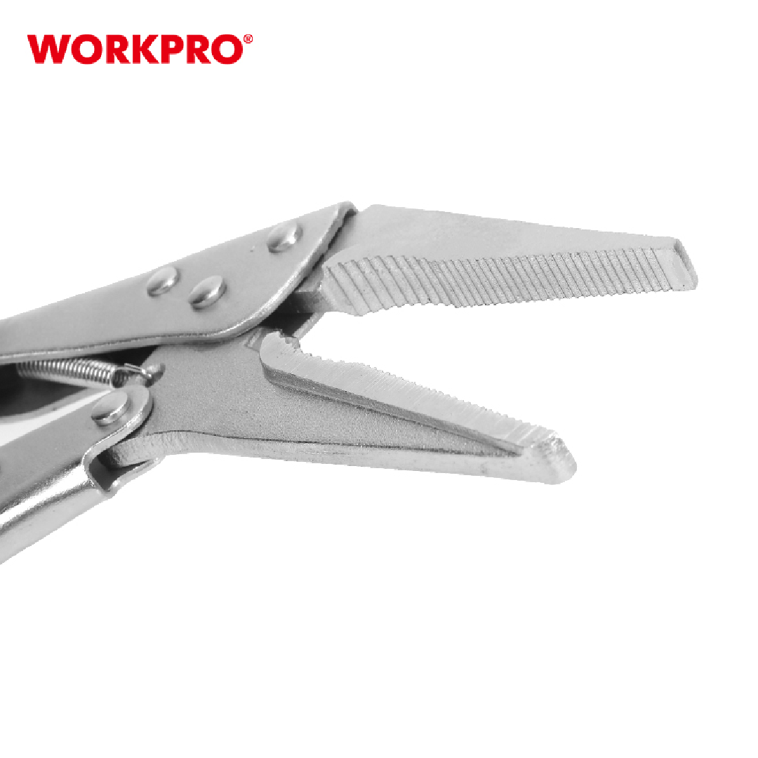 زرادية كبس بوز طويل 9 انش 230 ملم من وورك برو WORKPRO للإمساك الدقيق والإمساك بالمساحات الضيقة. مصنوعة من فولاذ الكروم الفاناديوم (CR-V) عالي الجودة، توفر هذه الكماشة متانة وقوة استثنائيتين. توفر الفكين الطويلين والمستقيمين قبضة قوية على الأشياء الصغيرة، مما يجعلها مثالية للمهام المعقدة. تضمن آلية الفتح السريع القفل والفتح بسهولة، مما يعزز كفاءة المستخدم. يسمح المسمار القابل للتعديل بضبط الضغط بدقة لاستيعاب أحجام قطع العمل المختلفة.