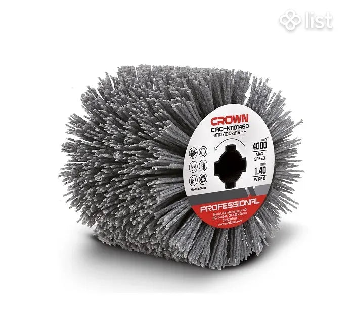 فرشاة Crown CTWBP0044 عبارة عن فرشاة دائرية مصممة لتطبيقات التشطيب السطحي والتنظيف. تتميز بقلب بلاستيكي مع شعيرات كاشطة من النايلون المنزلي، وهي مناسبة لمواد مختلفة.