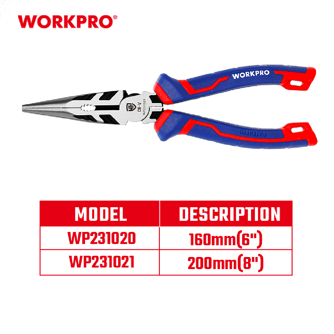 زرادية صناعية بوز طويل 6 انش 160 ملم من ووركبرو Workpro WP231020 CR-V ذات الأنف الطويل هي أداة مقاس 6 بوصات (160 مم) مصممة للمهام الدقيقة مثل الإمساك بالأشياء الصغيرة والوصول إلى المساحات الضيقة وإمساك الأسلاك وربط الأسلاك. مصنوعة من فولاذ الكروم الفاناديوم (CR-V) عالي الجودة، هذه الكماشة مصنوعة من أجل متانة محسنة وتتميز بسطح لامع متين يقاوم الصدأ. تم تصميم مقبض الراحة ثلاثي المواد ليتناسب بشكل مريح في اليد، مما يقلل من إجهاد اليد أثناء الاستخدام لفترات طويلة.