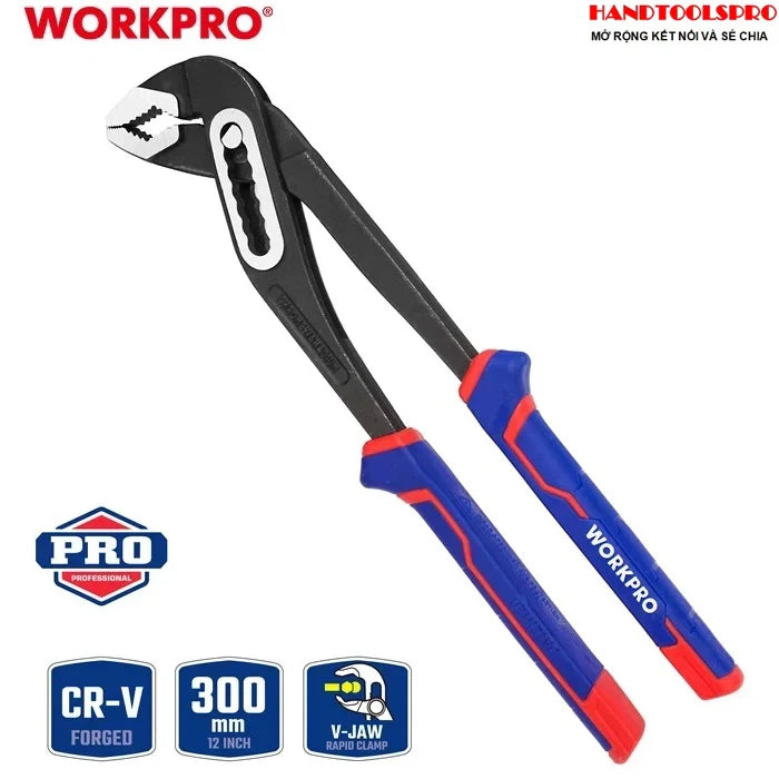 زرادية فورد صناعي بروفيشنال 12 انش 300 ملم من ووركبرو WP231029 CR-V من Workpro هي كماشة مصممة للإمساك وتحويل الأنابيب والتجهيزات بأحجام مختلفة. مصنوعة من فولاذ الكروم الفاناديوم (CR-V) عالي الجودة، توفر هذه الكماشة قوة ومتانة استثنائيتين. يستوعب تصميم الفك V أشكالًا متعددة، مما يوفر قبضة آمنة على الأشياء المستديرة أو السداسية أو المسطحة. يضمن مقبض الإمساك المريح ثلاثي المواد التعامل الأمثل ، مما يقلل من إجهاد اليد أثناء الاستخدام لفترة طويلة.