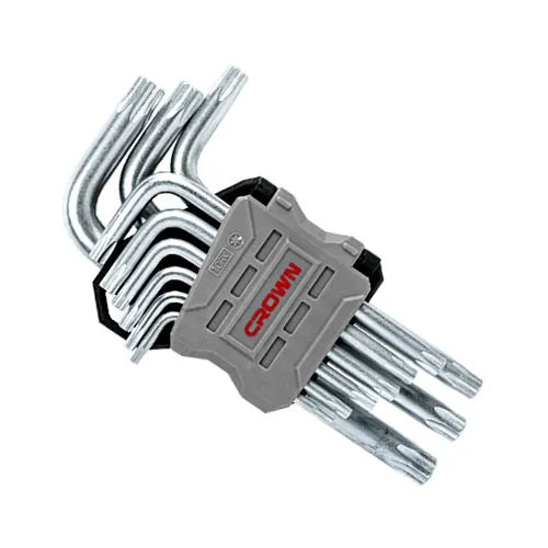الوصف: تم تصميم مجموعة مفاتيح توركس المكونة من 9 قطع CPHOK-TMAX09 من كراون للمحترفين وهواة الأعمال اليدوية. تتضمن هذه المجموعة تسعة مفاتيح توركس، مما يوفر مجموعة شاملة من الأحجام لتطبيقات مختلفة. كل مفتاح مصنوع من فولاذ الكروم والفاناديوم، مما يضمن المتانة والقوة. يسمح تصميم الذراع القصير بعزم دوران وتحكم أفضل أثناء الاستخدام.