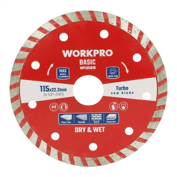 شفرة منشار WORKPRO WP405015 الماسية التوربينية بقطر 115 مم، مصممة للاستخدامات الجافة والرطبة. تتميز بمحور بقطر 20 مم وارتفاع مقطع... اقرا المزيد