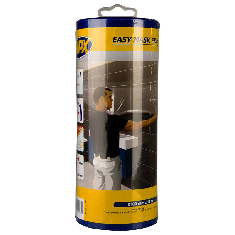 فيلم HPX Easy Mask Film مع تيب لاصق وموزع (DE270016) عبارة عن رقاقة شفافة مدمجة مع شريط لاصق، يبلغ عرضها 2700 مم وطولها 16 مترًا. تم تصميم هذا المنتج، الذي يتم تعبئته في موزع عملي، لتغطية وإخفاء الأسطح الكبيرة مثل الأثاث والجدران. تلتصق الرقاقة بالأسطح عن طريق الشحنات الساكنة، مما يجعلها مناسبة للأسطح الملساء والخشنة قليلاً. وهي مخصصة للاستخدام الداخلي ويمكنها تحمل درجات حرارة تصل إلى 60 درجة مئوية (80 درجة مئوية لفترات قصيرة).