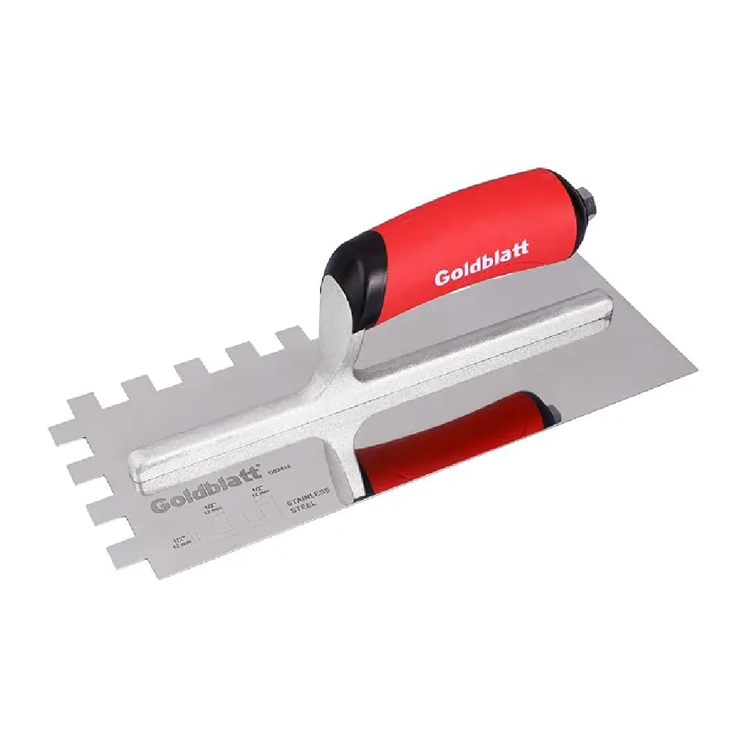 مسطرين الغراء الاحترافي "مشرشر" (Pro Stainless Steel Notch Trowel) – موديل G02379 – هو الأداة الفائقة من جولد بلات (Goldblatt) المصممة لتطبيق غراء البلاط والسيراميك بدقة متناهية. يتميز بشفرة من الستانلس ستيل المصقول كالمرآة والمقاوم للصدأ، مما يضمن انسيابية العمل وطول عمر الأداة في أصعب ظروف المواقع.