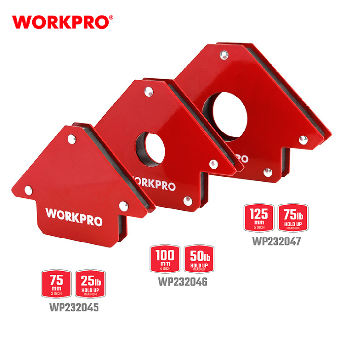 زاوية مغناطيس جمع 5 انش من وورك برو WORKPRO WP232047 هو أداة قوية مصممة لتثبيت الأجسام المعدنية الحديدية بأمان بزوايا مختلفة أثناء أعمال اللحام واللحام والتجميع والترميز. تضمن قوتها المغناطيسية القوية التشغيل بدون استخدام اليدين، مما يعزز السلامة والكفاءة في مشاريع تشغيل المعادن.
