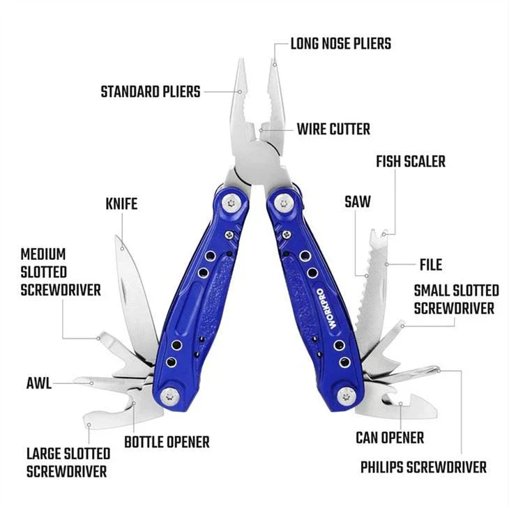 زرادية WORKPRO WP382003 متعددة الوظائف 13 في 1 هي أداة مدمجة ومتعددة الاستخدامات مصممة لهواة الأعمال اليدوية والمحترفين. مصنوعة من الفولاذ المقاوم للتآكل مع مقبض من الألومينا السوداء، تجمع بين أدوات أساسية متعددة في جهاز واحد مريح، مما يجعلها مثالية للاستخدام اليومي والأنشطة الخارجية.