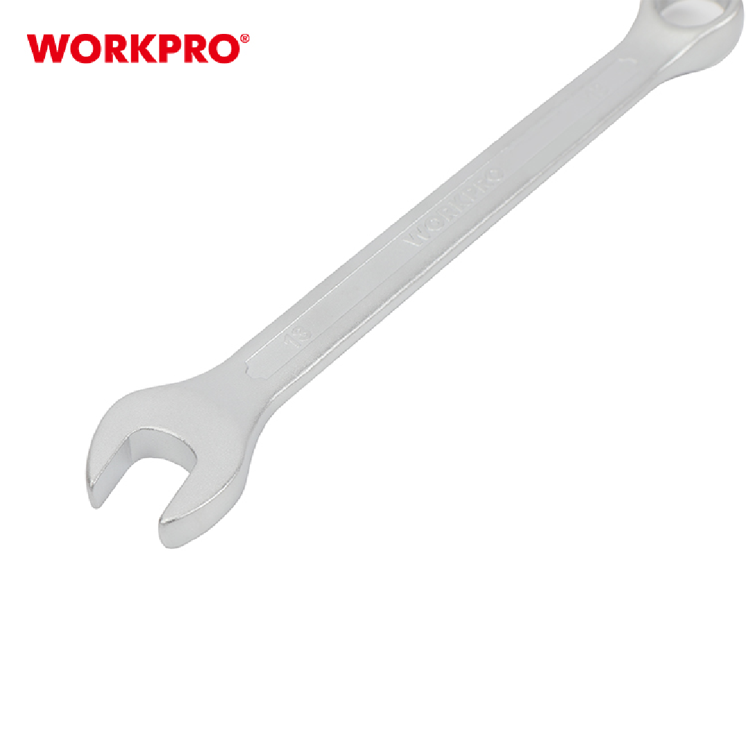 مفتاح شق‑رنق مفرد من WORKPRO W073305مقاس 13 مم، مصنّع من فولاذ الكروم‑فاناديوم (Cr‑V) عالي الجودة، ومعالج حرارياً لتعزيز القوة والمتانة، ويتميّز بلمسة نهائية مطلية بالكروم ومصقولة/رمليّة لمقاومة التآكل. هذا المفتاح جزء من سلسلة مفاتيح تغطي المقاسات من 6 مم حتى 32 مم.