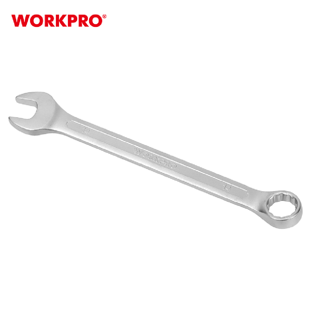 مفتاح شق‑رنق مفرد من WORKPRO WP273035 مقاس 14 مم، مصنّع من فولاذ الكروم‑فاناديوم (Cr‑V) عالي الجودة، ومعالج حرارياً لتعزيز القوة والمتانة، ويتميّز بلمسة نهائية مطلية بالكروم ومصقولة/رمليّة لمقاومة التآكل.