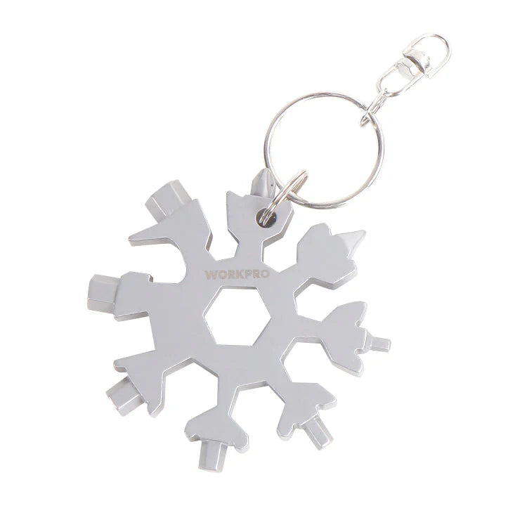 أداة WORKPRO متعددة الاستخدامات ١٨ في ١ على شكل ندفة ثلج، مصممة بشكل مدمج، مصنوعة من الفولاذ المقاوم للصدأ المتين. صُممت لتعدد استخداماتها، حيث تجمع ١٨ وظيفة في تصميم محمول، مما يجعلها مثالية للأنشطة الخارجية، وإصلاحات المنازل، وحالات الطوارئ.