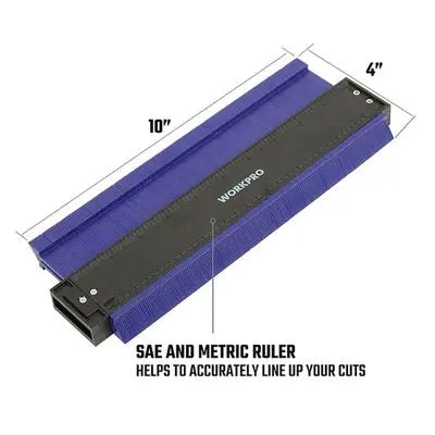 WORKPRO WP269001 هو جهاز اخذ زوايا البلاط مقاس 250 مم (10 بوصات) مصمم لمحاكاة الأشكال والمقاطع غير المنتظمة بدقة. مثالي لمشاريع النجارة والبلاط والأرضيات، حيث يتيح محاكاة دقيقة للخطوط المعقدة.