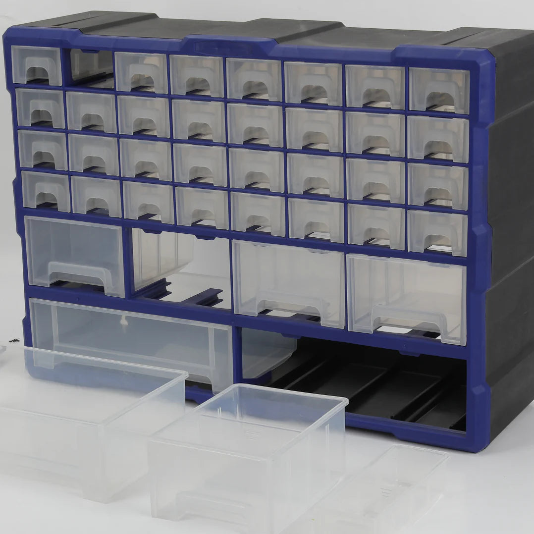 منظم WORKPRO WP283009 هو وحدة تخزين متعددة الأدراج مصممة لتخزين المسامير والبراغي والأدوات الصغيرة. مصنوع من هيكل بولي بروبيلين متين وأدراج بوليسترين شفافة، كما يمكن تثبيته على الحائط لتوفير المساحة، مما يجعله مثالياً للورش والهوايات.