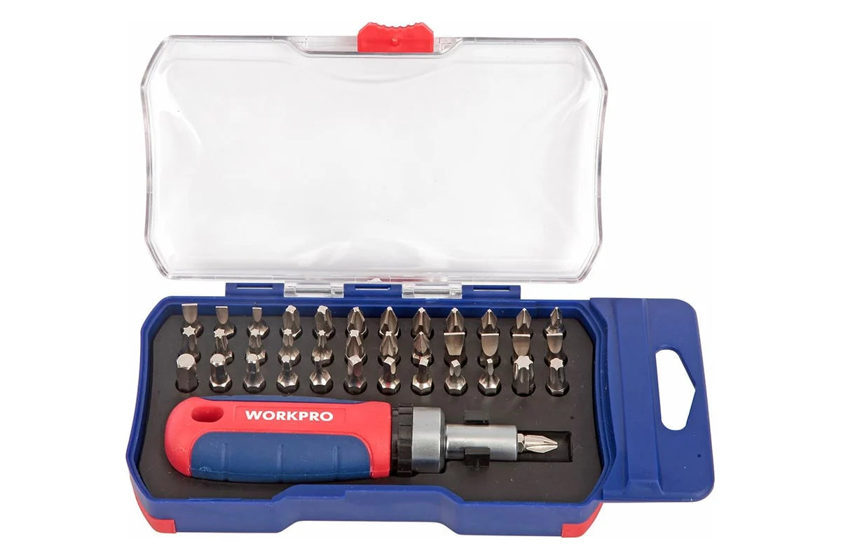 مجموعة مفكات براغي WORKPRO ذات السقاطة (W021182) هي مجموعة أدوات شاملة مصممة للمهام الدقيقة في الإلكترونيات والميكانيكا ومشاريع "اصنعها بنفسك". تتميز بهيكل متين من فولاذ الكروم والفاناديوم (CR-V)، ومقبض مفك براغي ذو سقاطة بقياس 1/4 بوصة، ومقبض مريح مانع للانزلاق للاستخدام المريح.