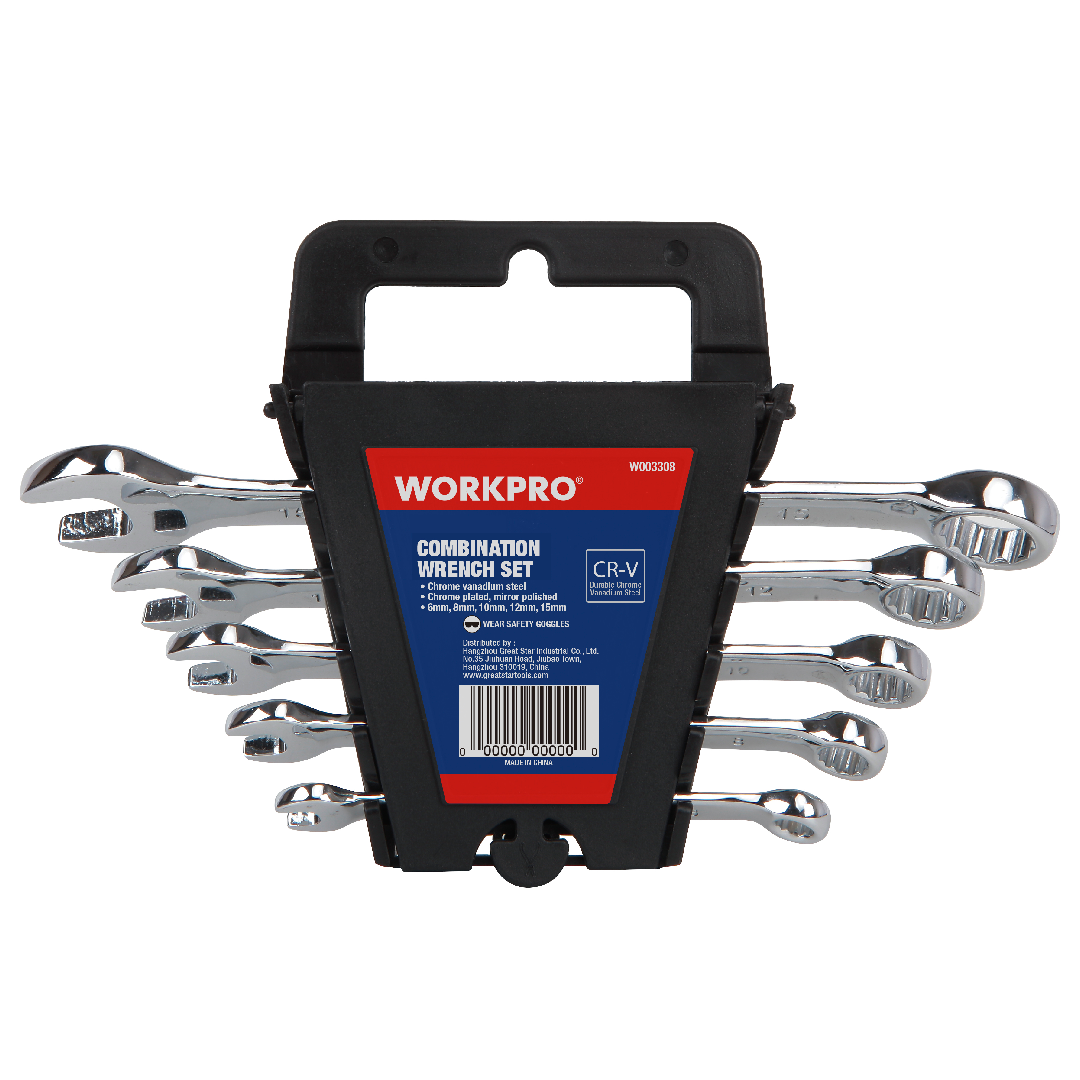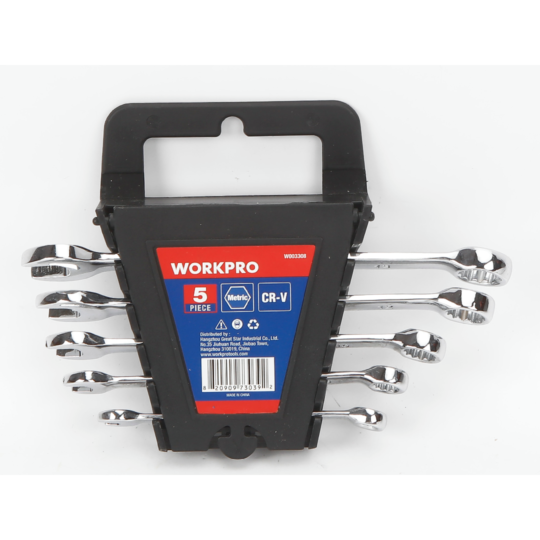 طقم شق رنق 5 قطع من وورك برو WORKPRO W003308WE متعددة الاستخدامات ومتينة في التطبيقات الميكانيكية المختلفة. كل مفتاح ربط مصنوع من فولاذ الكروم الفاناديوم عالي الجودة، مما يوفر القوة والمقاومة للتآكل. تتضمن المجموعة أحجام مترية شائعة الاستخدام، مما يجعلها مناسبة لمجموعة واسعة من المهام.
